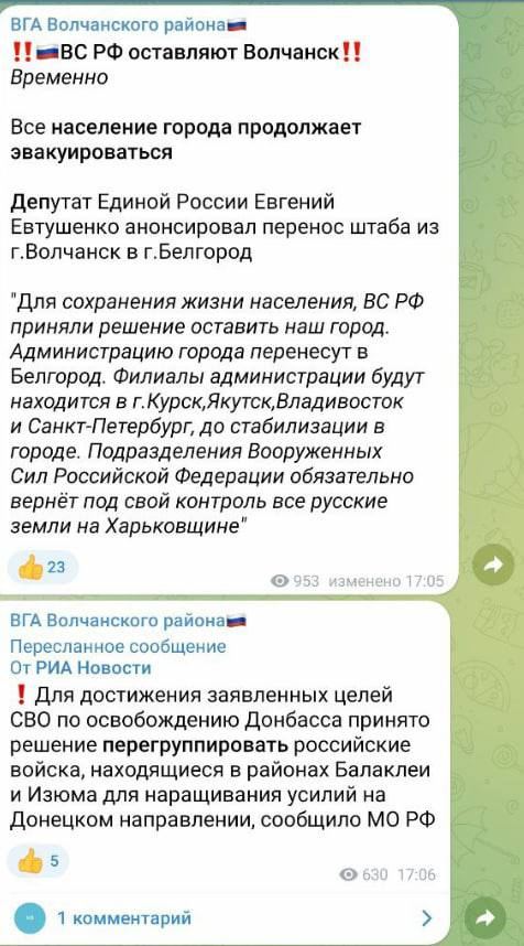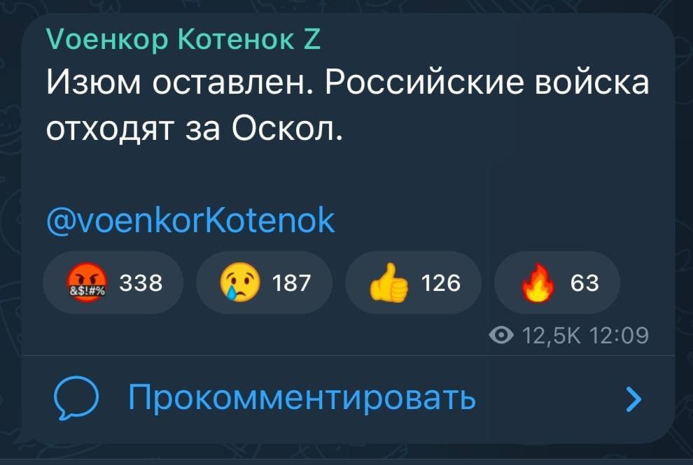 Ну, якщо вже навіть чмо Котенок написав, що орки здриснули з Ізюму, то, насправді, вони вже добігають до Ростова :mrgreen: