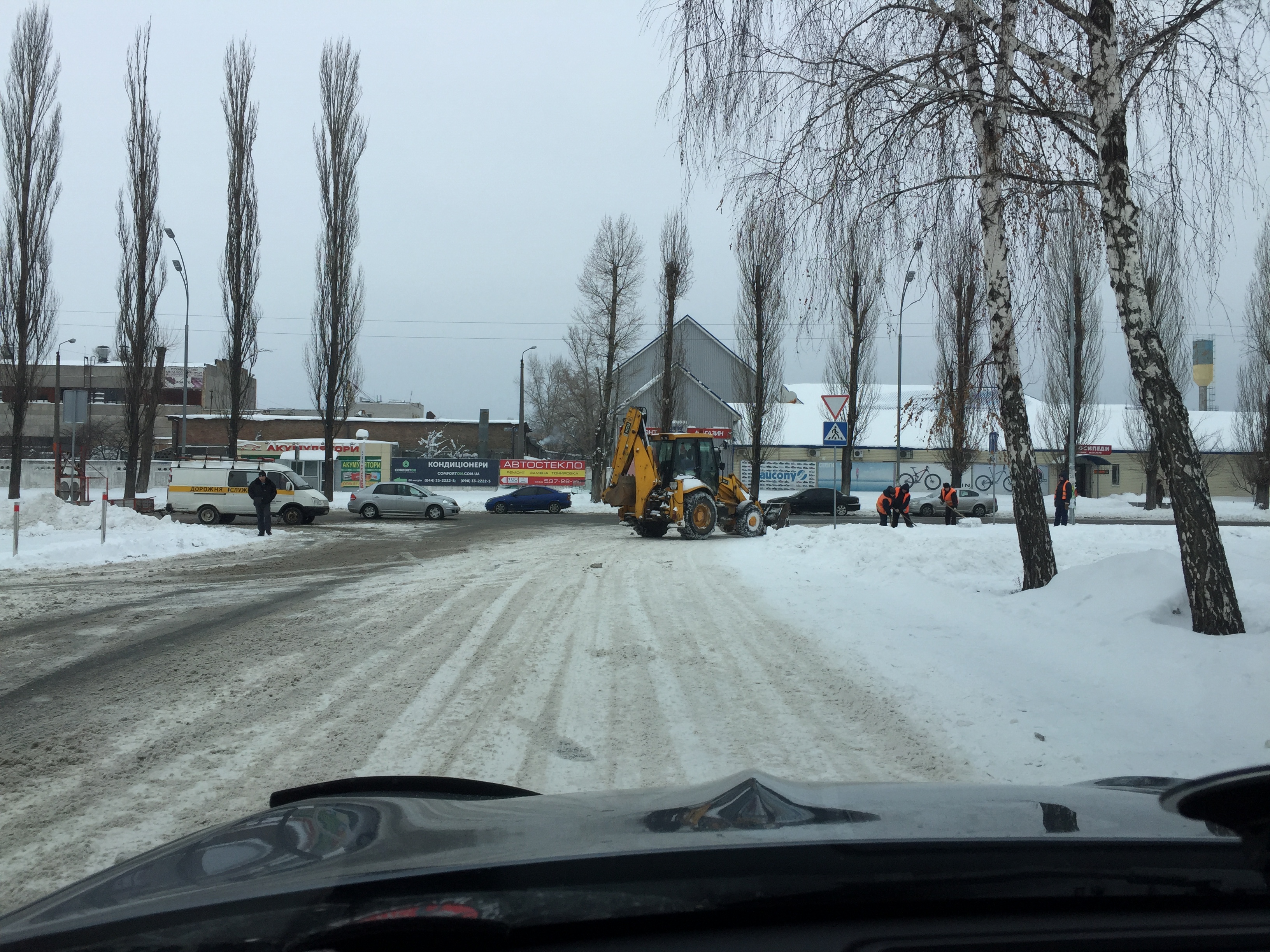 Да все нормуль. Температура поднялась до минус 6. Дороги проездные на 100%, правда, кое-где реально скользко. А вот во дворах - печаль. Трактор припаркован у входа в ЖЭК, и плевать им на то, что творится на тротуарах и дорогах.