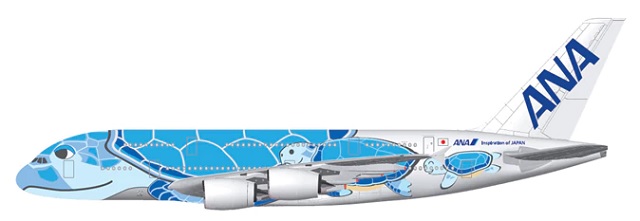 The ‘Flying Honu’ livery, by Tokyo resident Chihiro Masuoka, was picked from an open design competition. It features the Hawaiian green sea turtle, which the airline says is a sign of prosperity and good luck.