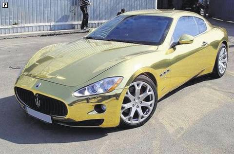 «У нас мода на золото и серебро появилась в конце 2010-го, — рассказывает менеджер проектов киевской студии southart, где тюнинговали одесскую Maserati, Александр Хоменко. — Обтянуть машину «серебром» стоит дешевле, и таких авто — много, а «золотых» — единицы». Взглянув на сверкающее авто, и вправду можно подумать, что его покрыли натуральным золотом. На самом деле «скакуна» обтянули специальной золотой пленкой, в составе которой нет металла №1. «И все равно это недешевое удовольствие. Работа над среднестатистическим седаном занимает около недели и стоит $5—7 тыс., — говорит Хоменко. — Плюс цена самой пленки. Она отличается по качеству, но в среднем стоит около $100 за кв. м». По словам специалиста, изначально было несколько эскизов покраски авто (заводской цвет — черный, — ред.), но владелец, которого в компании называть отказываются, остановился на «золоте».