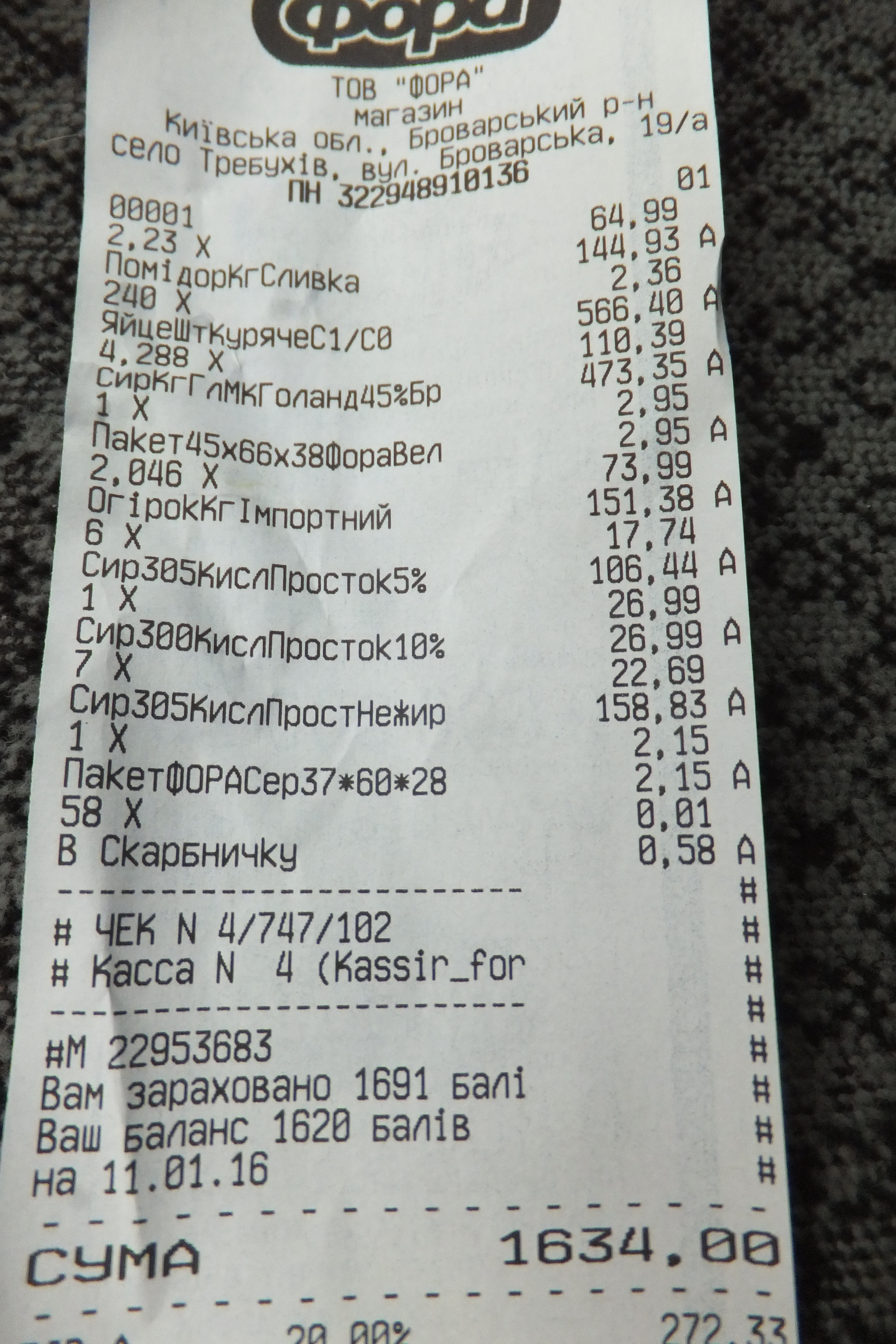 Купили вчера и отвезли продукты: сыр, помидоры, огурцы и творога сколько было свежего в Форе! Спасибо администратору нашему в Форе села Требухов! Всегда безоговорочно помогают. Сам загружал мне в машину продукты. И охраннику спасибо, всегда здоровается, всегда опрятный и приветливый. Всегда откроет дверь И ПОМОЖЕТ ДОНЕСТИ СУМКИ!!!! Респектище!