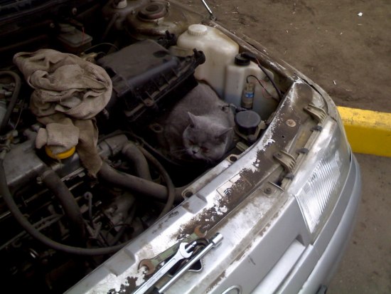Дядя Женя писал(а):Когда то писали где то. Мужик вышел из офиса, сел в свою машину и поехал. Слышит дикий рев какой то из под капота, останавливается, открывает капот. А там под ремнем генератора котяра сидит. Когда машина на парковке стояла, кот залез под арку на колесо поближе к теплу двигателя. Потом видимо ближе к огоньку перебрался, в подкапотное пространство. Кота достали целого и невредимого, но жутко перепуганного.