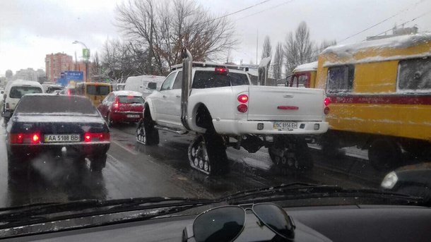 На столичных дорогах заметили удивительный внедорожник на гусеницах, которому не страшен снегопад. У автомобиля львовские номера. Об этом сообщает Страна.ua.