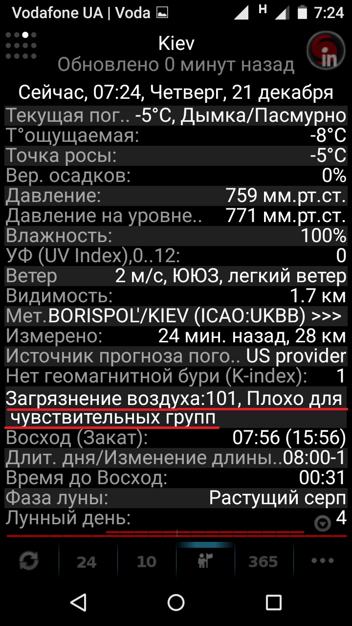 Сегодня утром прогноз выдал такую текущую погоду