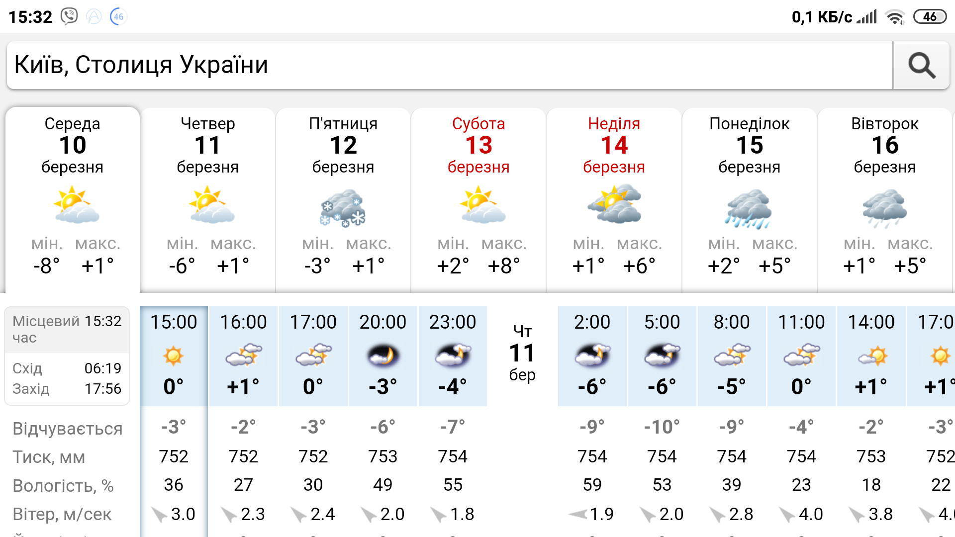 Зокрема, американський сайт wunderground.com указує, що опади в західній частині України розпочнуться вночі 12 березня або й пізно ввечері 11 березня.