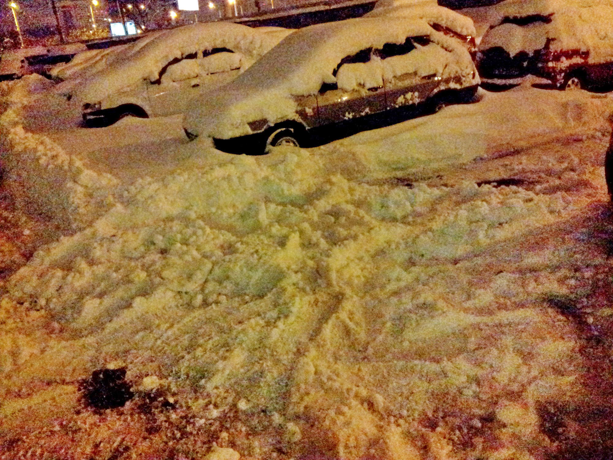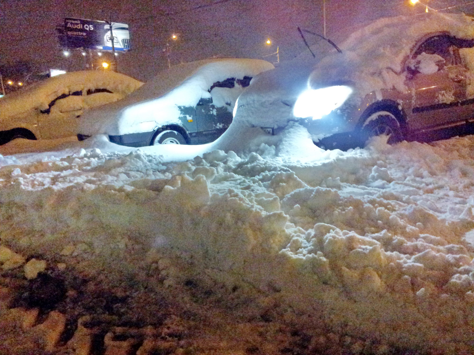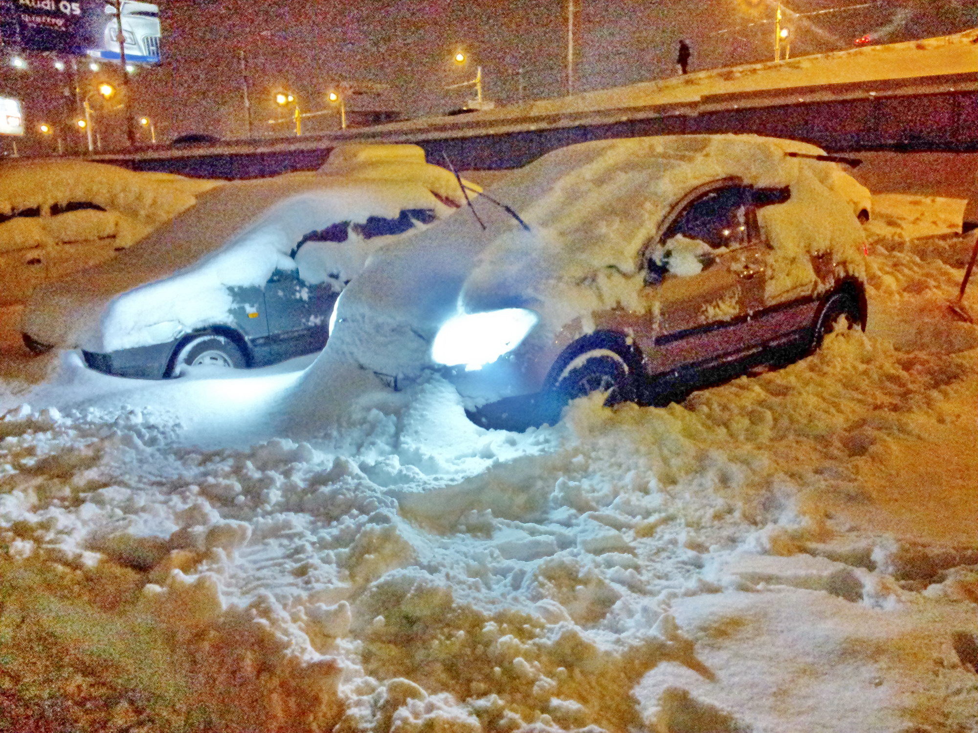 Опасные навесы на заднем плане, могут и рухнуть под тяжестью снега. Прямо на стоящие под ними машины.