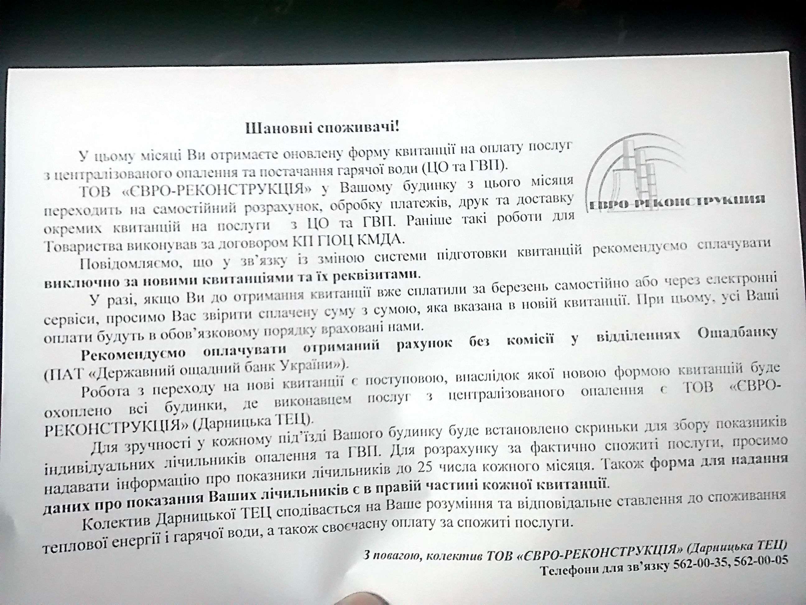 Для всех нас сюрпризом стал перевод на прямые договора с Киевэнерго на тепло и ГВ, хотя самих договоров никто в глаза не видел. Водоканал хоть заранее кампанию начал, активно заключал договора, в том числе, и через ЖЭКи и обслуживающие компании.