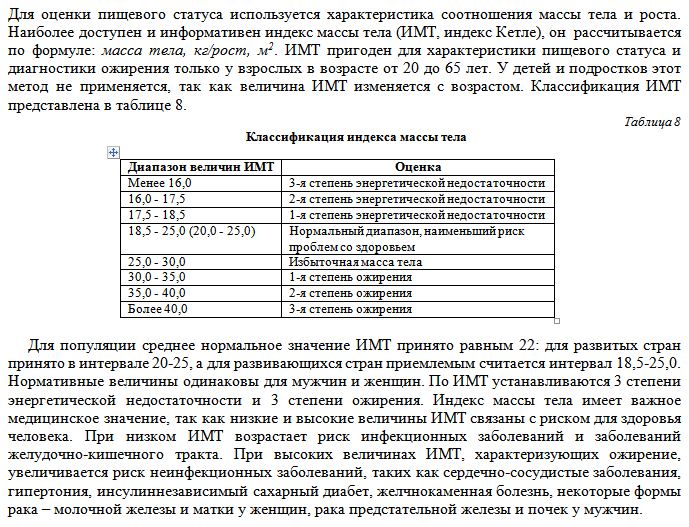 oleg_tТут всё очень просто! На картинке (это из методички от россиян, нашу не нашёл в электронном виде, она у меня где-то в книжном виде валяется, но идентична росийской) - классификация пищевого статуса по индексу Кеттле. Некоторые источники дают его ещё и в приложении к полу. По этому вот индексу легко расчитать диапозон своего нормального веса. Это наиболее простая система. По ней у меня должно быть приблизительно от 70 до 86 кг. Это - идеальный вес. На 4-м курсе института у меня было 88 кг... Так что, это всё реально; 86 кг - мой стратегический рубеж.