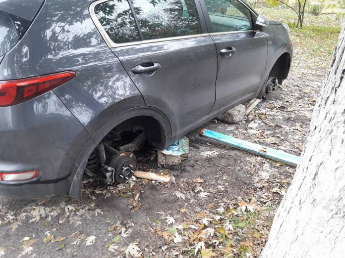Киевлянин Константин Мозговый свою новенькую KIA Sportage всего на одну ночь оставил на территории больницы №3 на ул. Петра Запорожца напротив приемной скорой помощи. Утром его ждал шок: машина стояла брюхом на кирпичах — с нее были сняты все четыре колеса.