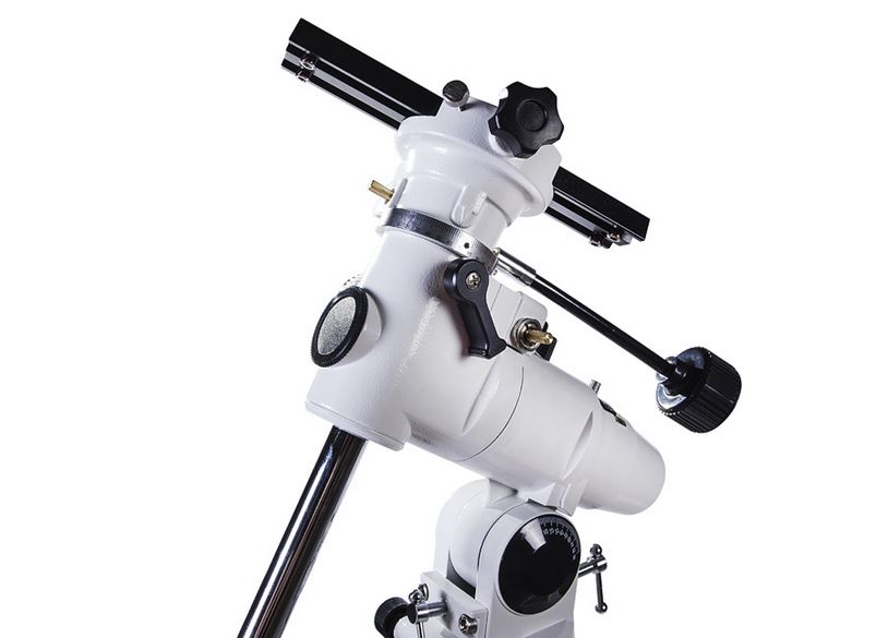 У телескопа крепление делается так чтоб телескоп поворачивался только в одной плоскости(вокруг длинной оси на картинке). А нижний регулятор возвышения выставляют в зависимости от времени года.