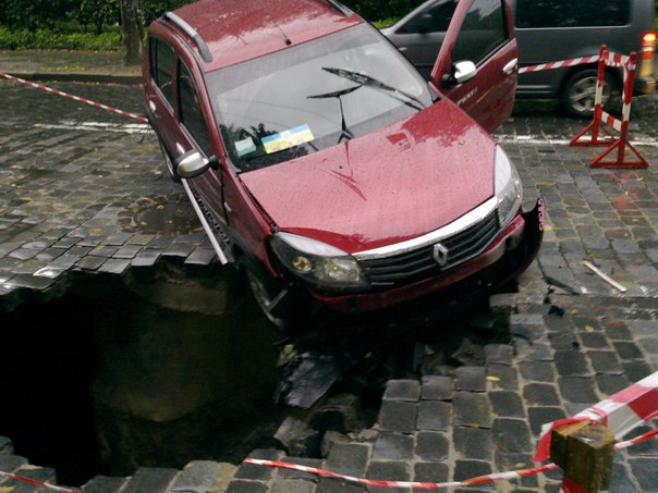 Еще и на подольском спуске ТСН-редакторша на сандерике чуть не провалилась под асфальт.