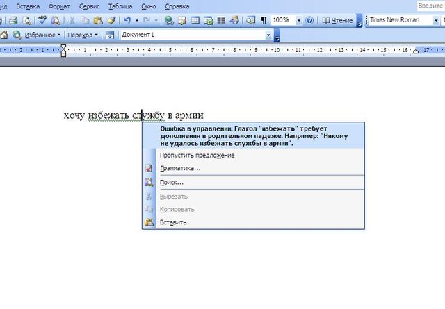 Напишите в Word фразу "хочу избежать службу в армии" (именно так