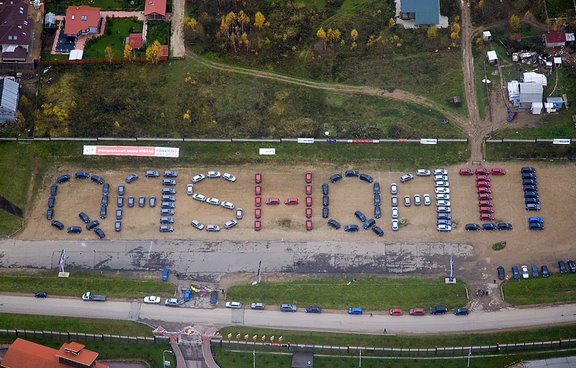 В рамках встречи прошла необычная акция: 109 автомобилей Nissan Qashqai были выстроены на парковке таким образом, что при взгляде с высоты птичьего полёта они составили слово – QASHQAI!