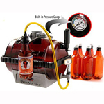 Именно такой, либо аналогичный комплект рекомендуется использовать новичкам. Простота конструкции и обращения не требует специализированных знаний и навыков. В состав пивной машины (Beer Machine) входит полупрозрачный бак для брожения, блок карбонизации, некоторые модели оснащены манометром, кран для наполнения бутылок либо дегустации. Очень интересно наблюдать весь процесс брожения через полупрозрачные стенки минипивоварни. Наличие блока карбонизации позволяет увеличивать степень загазованности пива путем дополнительного растворения углекислого газа в напитке из баллончика. За степенью образуемого давления при брожении можно следить с помощью встроенного манометра. Благодаря компактности пивной машины она без труда помещается в холодильник для дображивания пива. Но у такого помощника в изготовлении пива имеется и ряд недостатков. Во-первых, ограниченный объем приготавливаемого пива за раз - из-за компактности он не превышает 10 литров. Во-вторых, абсолютно отсутствует возможность творческого подхода - машина все делает за человека, нужно только успевать добавлять воду и пивной концентрат. В-третьих, стоимость самого комплекта не такая уж и маленькая. Если не останавливает ни один из этих пунктов, то, пивная машина - это ваш выбор, и стоит ее приобрести.