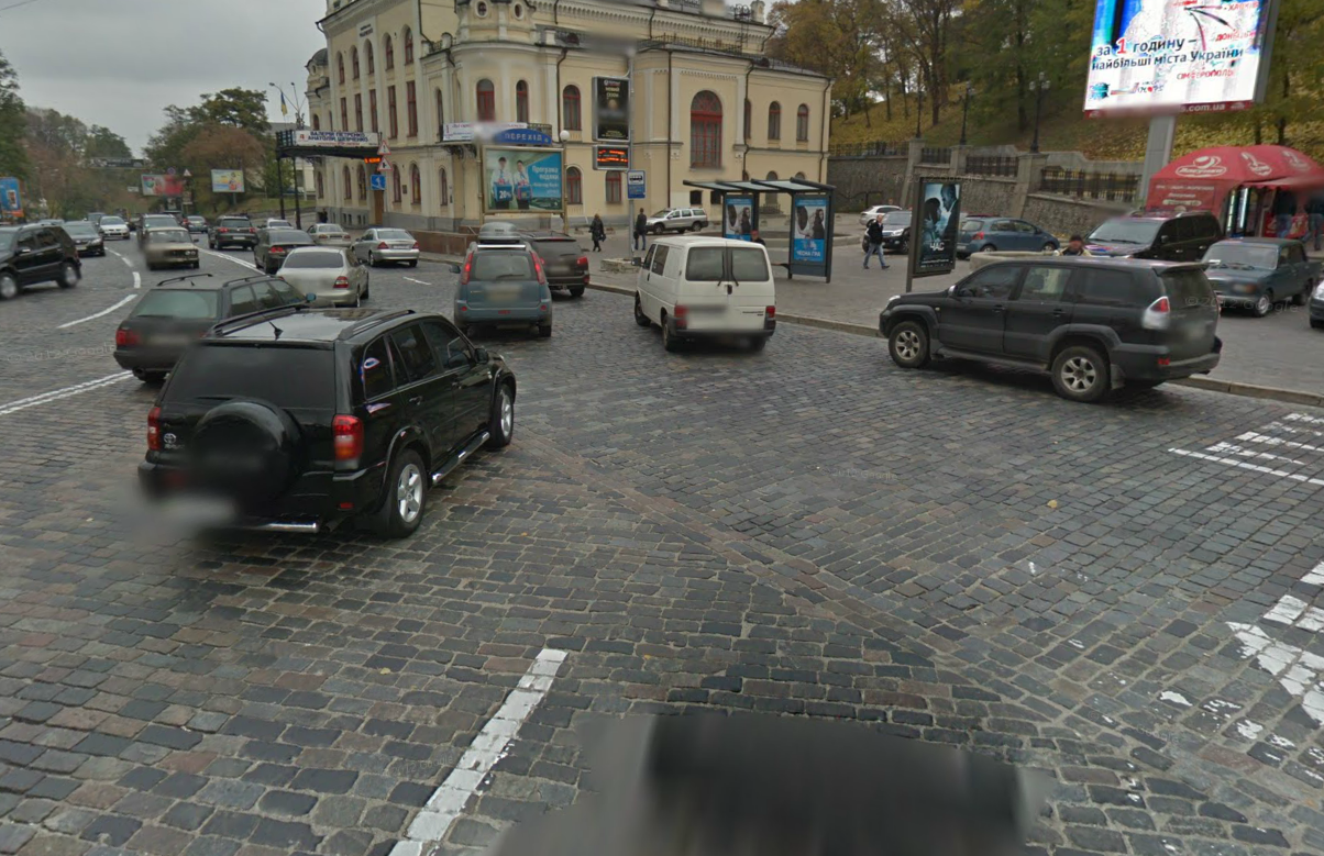 При съезде с Европейской площади на Владимирский спуск три полосы вливаются в две, разметка в три ряда прерывается и начинается разметка в два ряда, т.е. кто куда попадает неясно, знаков, относительного рядности нет.