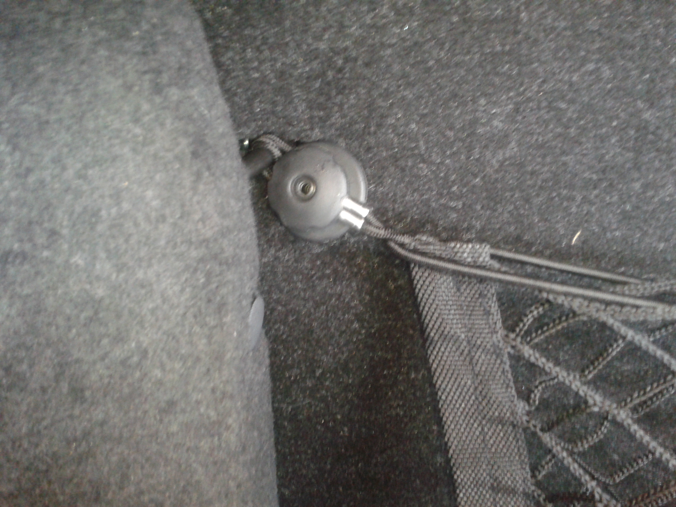 Если не забуду сделаю фото покажу, а если описать словами то на сетке с каждой стороны имеются по две резиновый петли, которые я продел в металлические петли на задней спинке сидения и в резиновую петлю вставил пластиковую круглую как-бы пуговицу, тем самым зафиксировал резиновую петлю, чтобы она не "выскакивала" из металлической петли