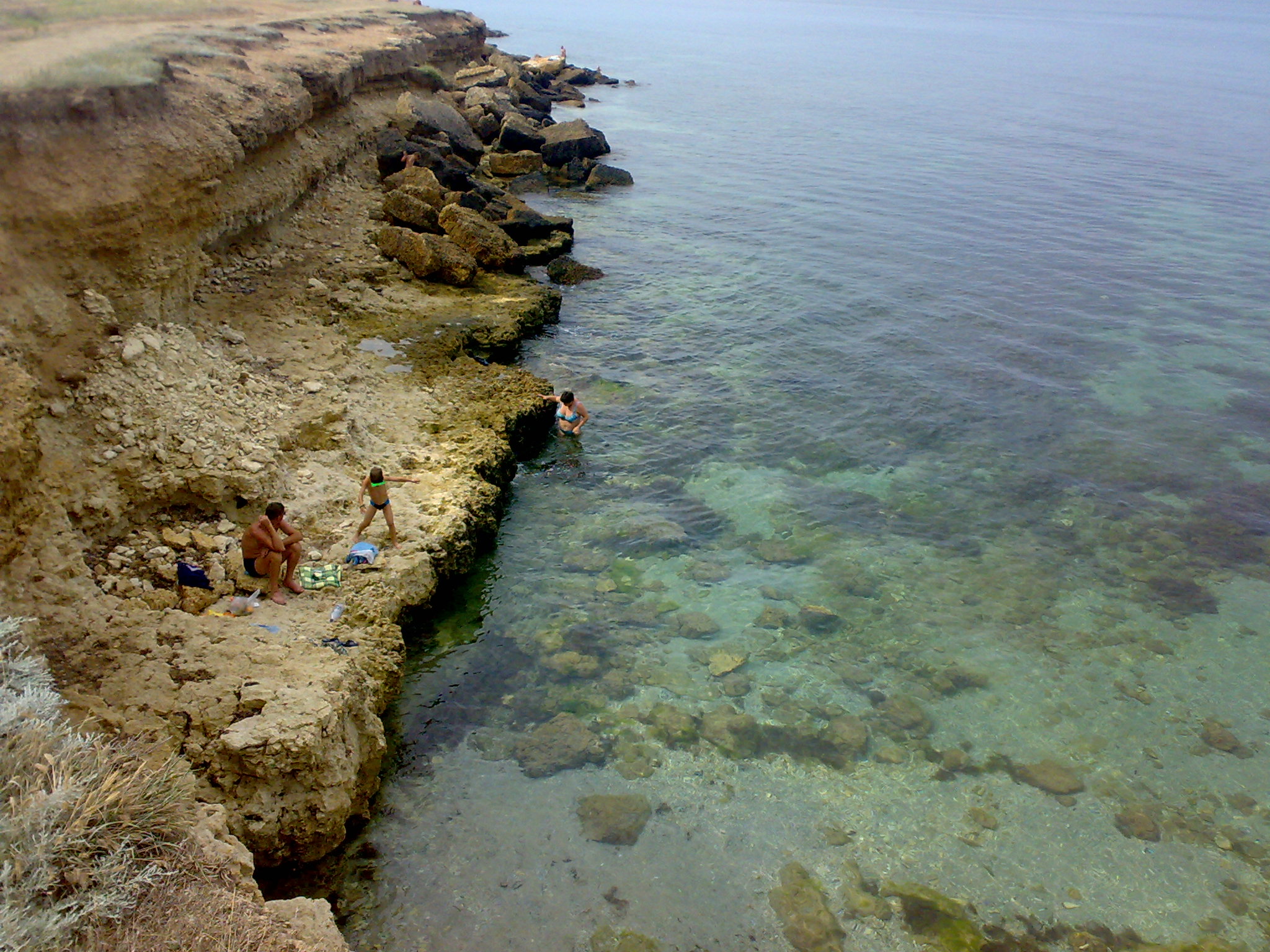 Не люблю спорить, есть фотки тоже, соглашусь что все это конечно хорошо и красиво, вода чистая со стороны маяка, да вот только небольшая проблема, в том месте нужно как боец "Delta Force" на веревке с обрыва к морю спускаться и потом как «SEAL» умудряться плавать в толще воды около 50-80 см, чтобы пузо об острый ракушняк не поцарапать, после чего счастливому