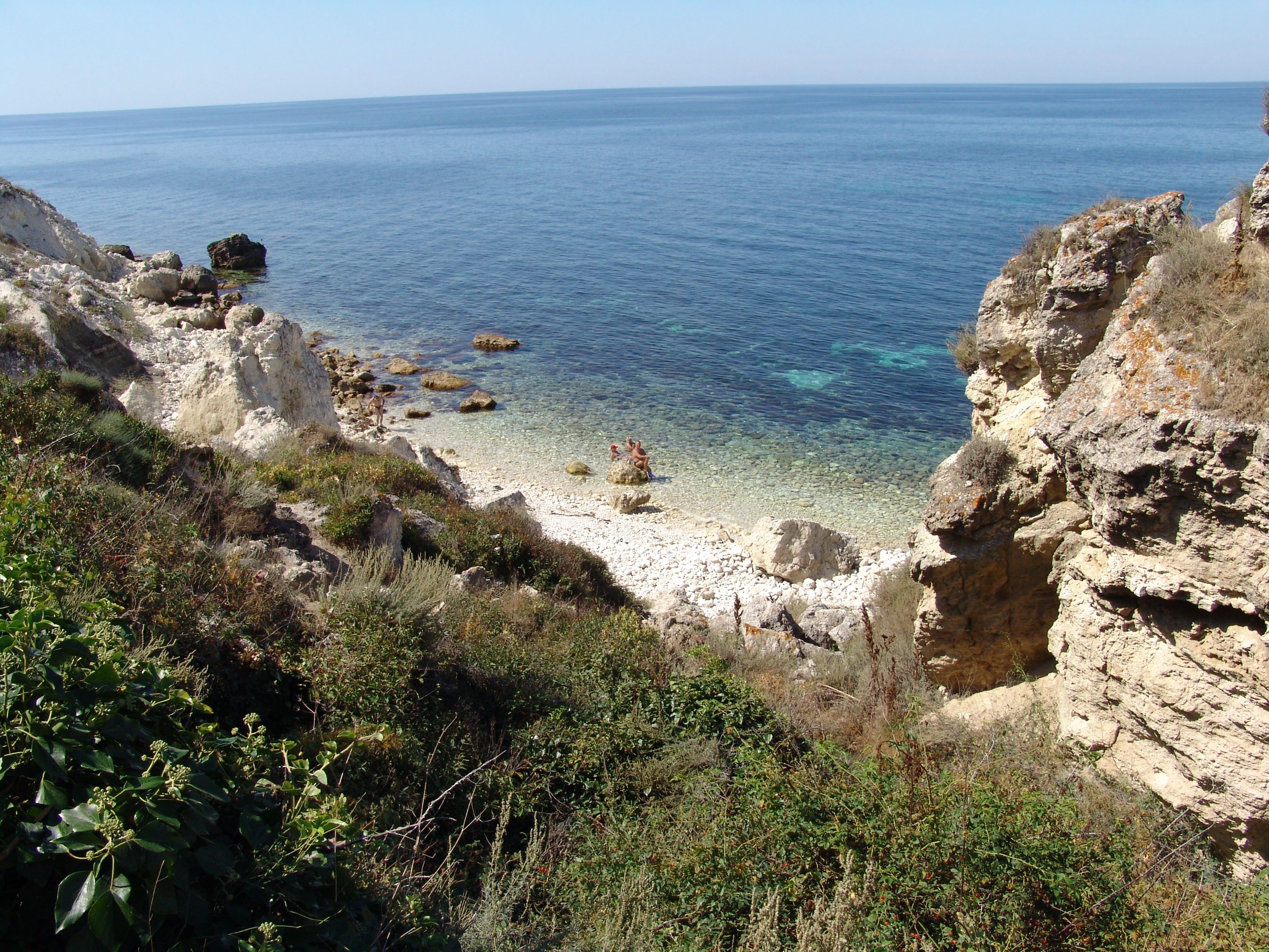 Не люблю спорить, есть фотки тоже, соглашусь что все это конечно хорошо и красиво, вода чистая со стороны маяка, да вот только небольшая проблема, в том месте нужно как боец "Delta Force" на веревке с обрыва к морю спускаться и потом как «SEAL» умудряться плавать в толще воды около 50-80 см, чтобы пузо об острый ракушняк не поцарапать, после чего счастливому