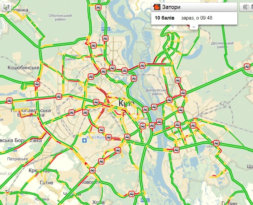 По данным сервиса Яндекс пробки, сейчас в городе наблюдаются 10-бальные заторы по 10-бальной шкале.