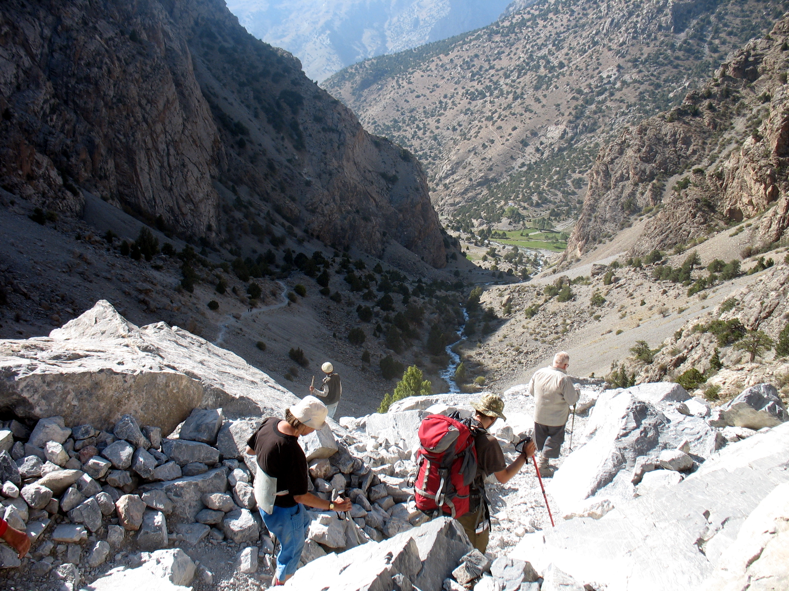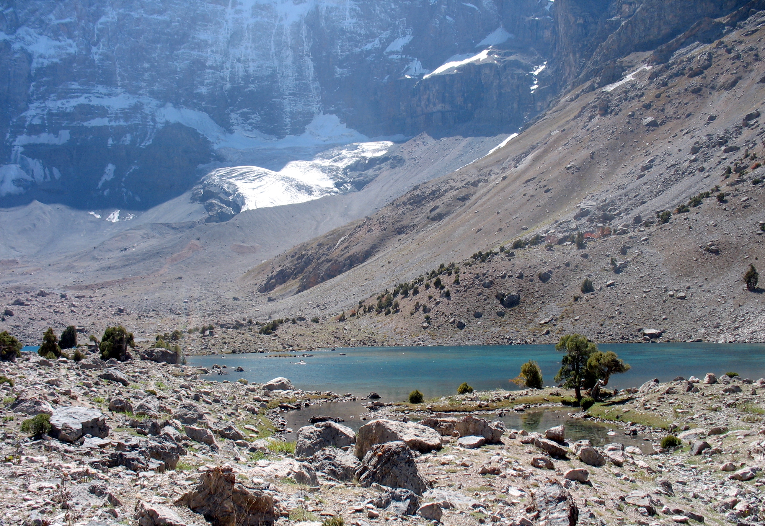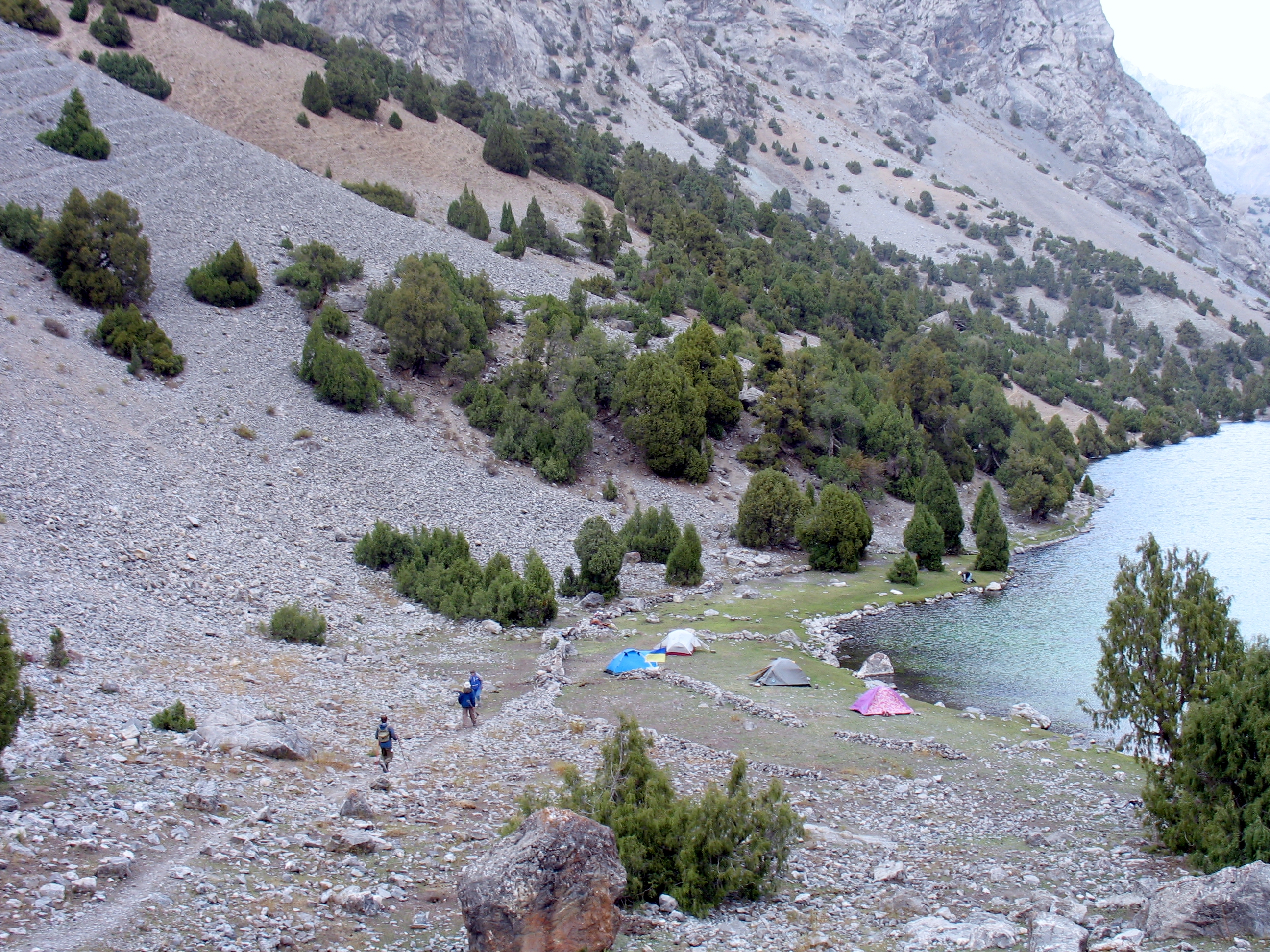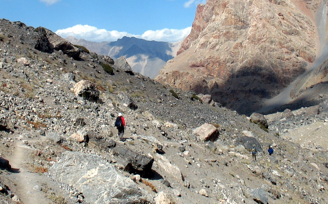 Добре натоптана, «народна» тропа йшла через 3 ступіні стародавніх льодовикових морен і завалів, кам`янистими осипами до величезної котловини, в якій сховались живописні озера. Це місце у Фанах мабуть найбільш популярне у туристів, навіть цього разу, не в сезон, ми зустріли мандрівників із декількох країн (французи, голландці, іспанці, ізраільтяни і поляки).