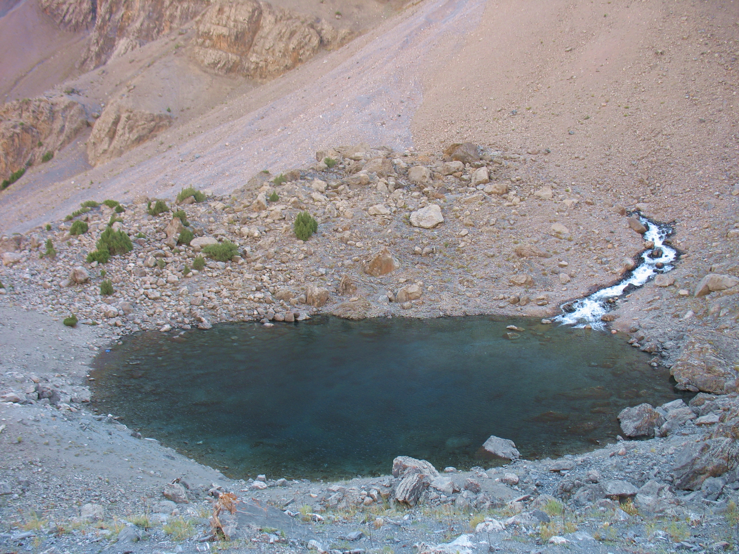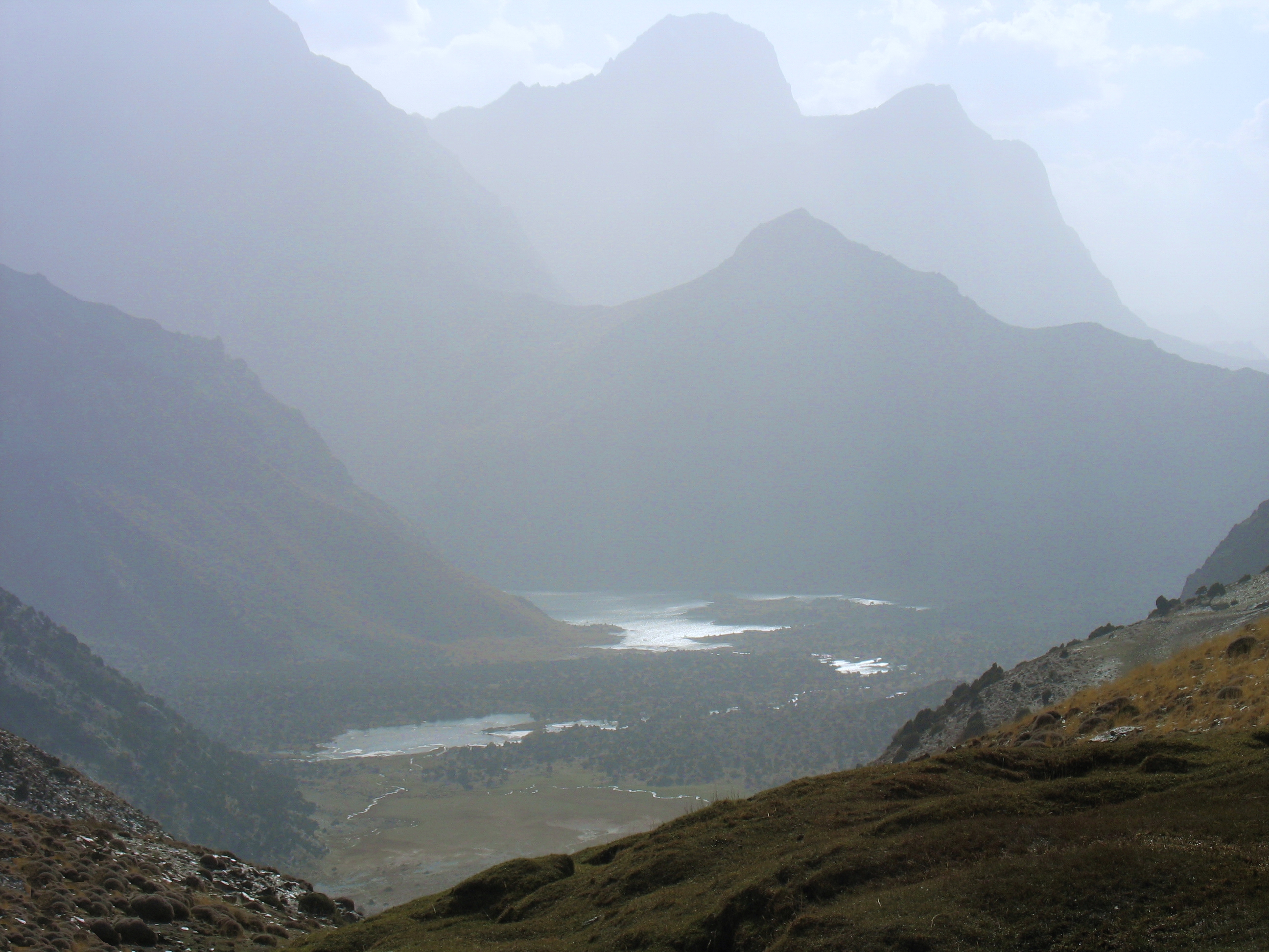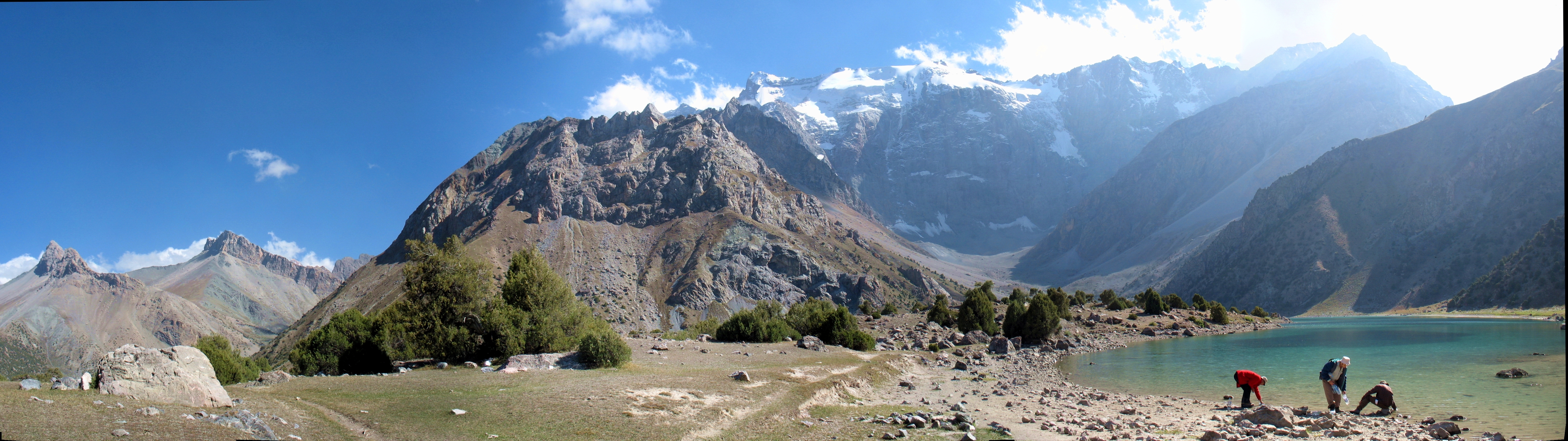 Добре натоптана, «народна» тропа йшла через 3 ступіні стародавніх льодовикових морен і завалів, кам`янистими осипами до величезної котловини, в якій сховались живописні озера. Це місце у Фанах мабуть найбільш популярне у туристів, навіть цього разу, не в сезон, ми зустріли мандрівників із декількох країн (французи, голландці, іспанці, ізраільтяни і поляки).