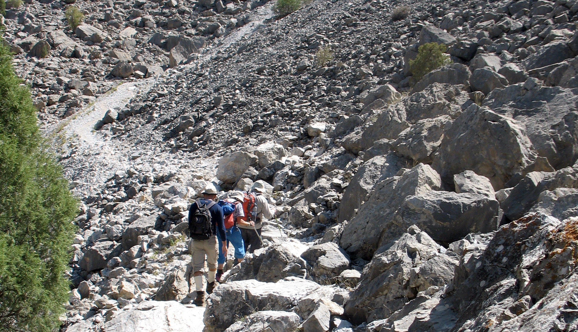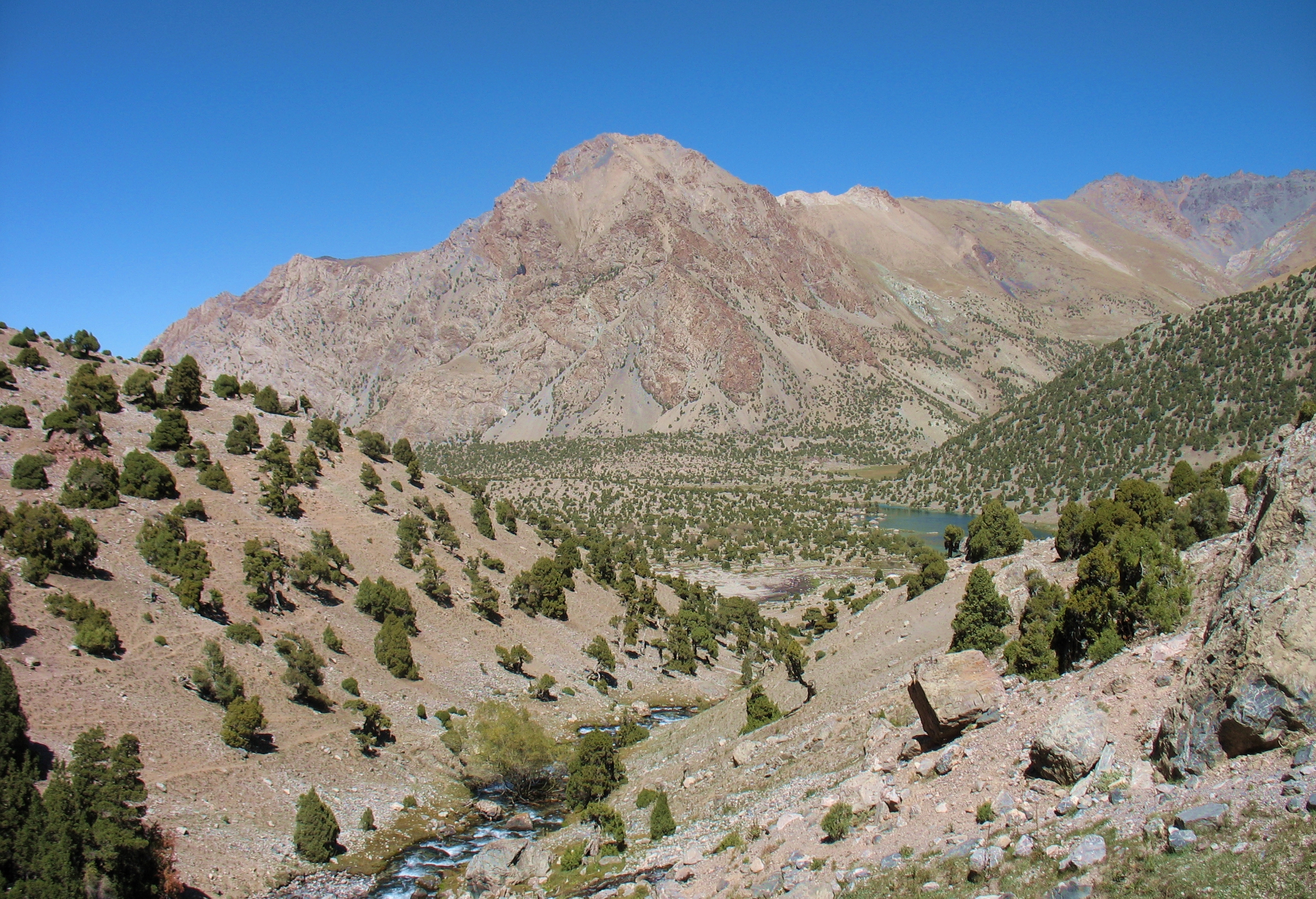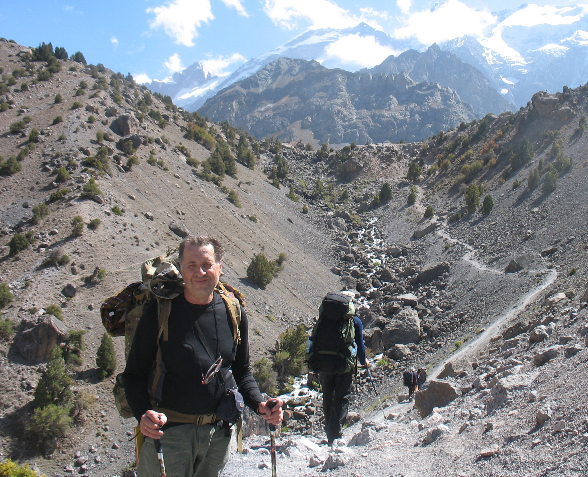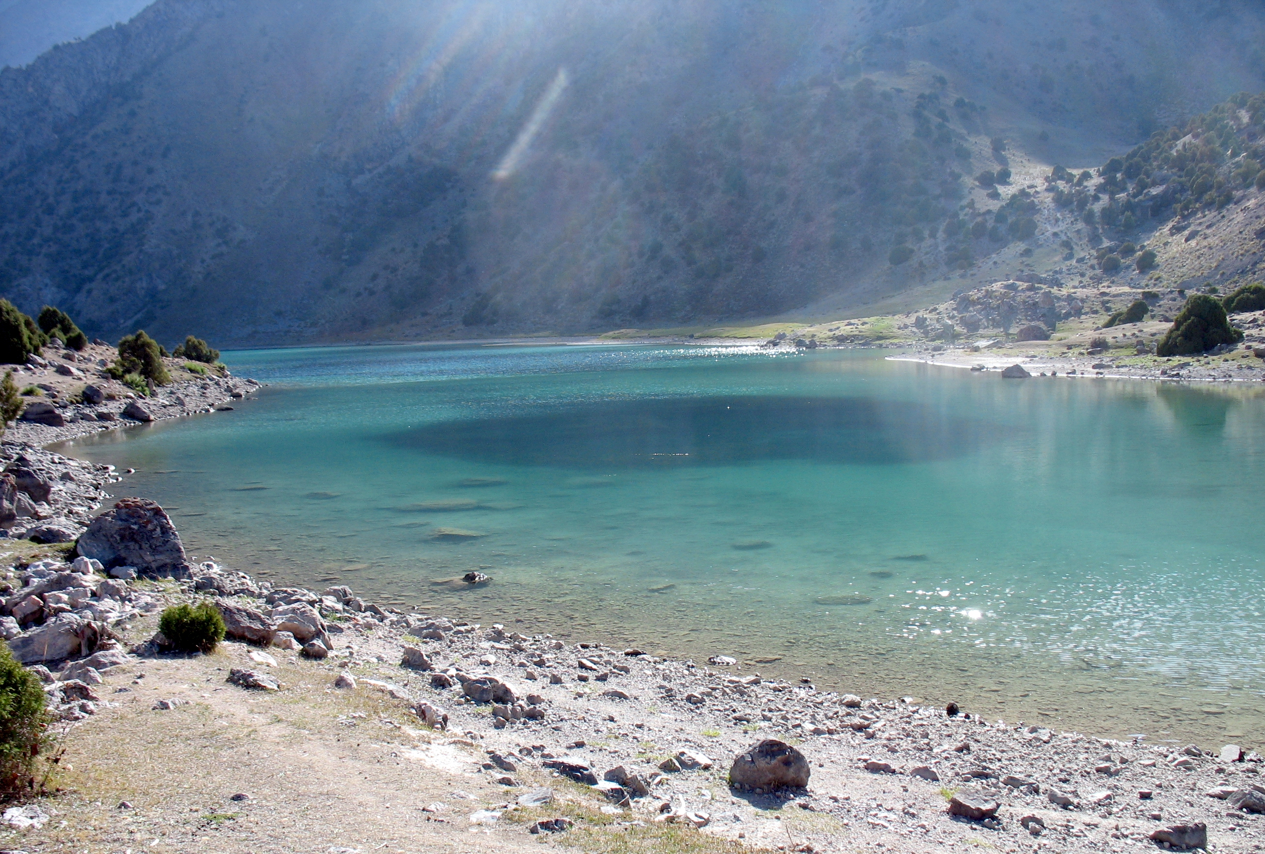 Добре натоптана, «народна» тропа йшла через 3 ступіні стародавніх льодовикових морен і завалів, кам`янистими осипами до величезної котловини, в якій сховались живописні озера. Це місце у Фанах мабуть найбільш популярне у туристів, навіть цього разу, не в сезон, ми зустріли мандрівників із декількох країн (французи, голландці, іспанці, ізраільтяни і поляки).