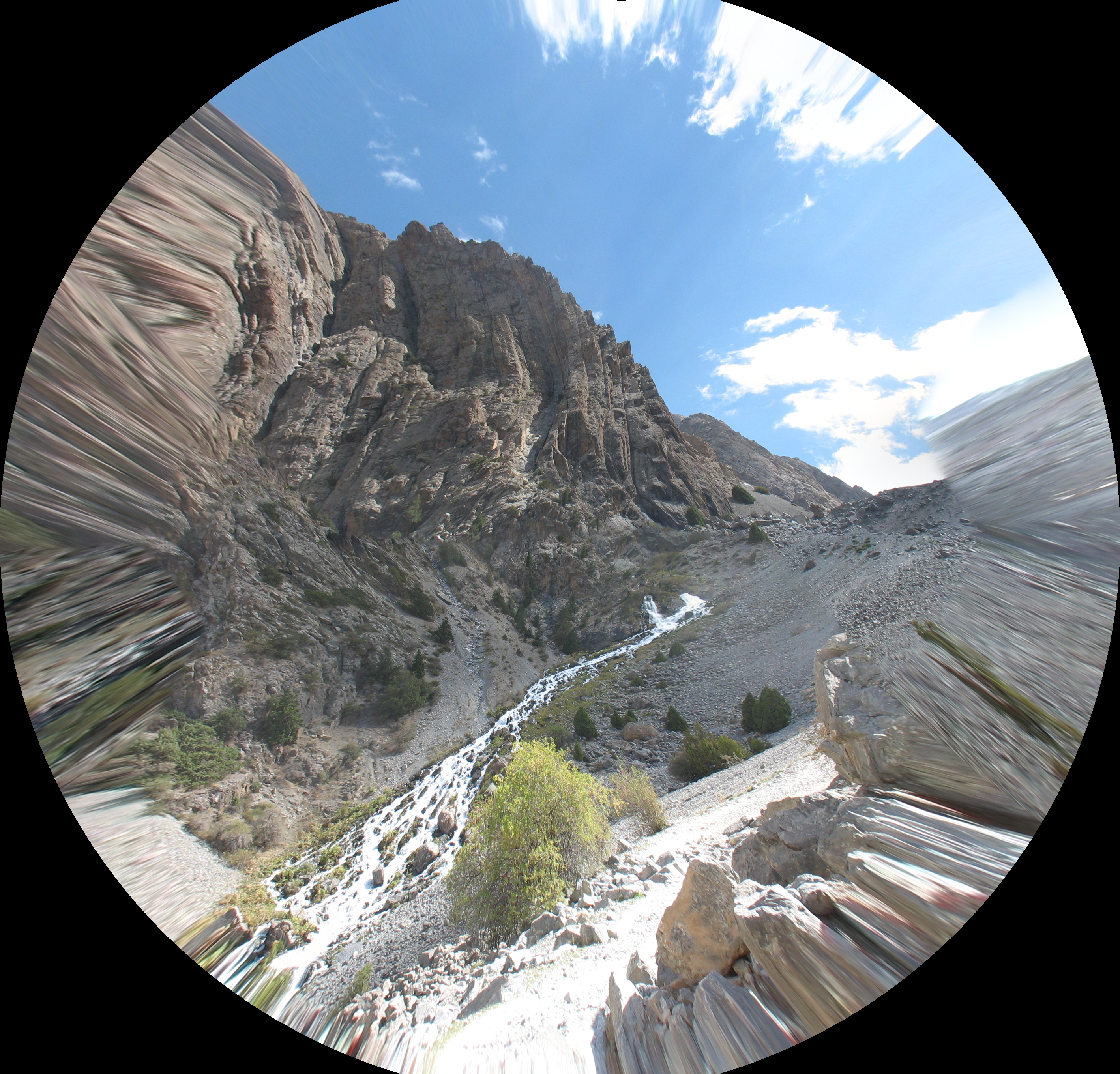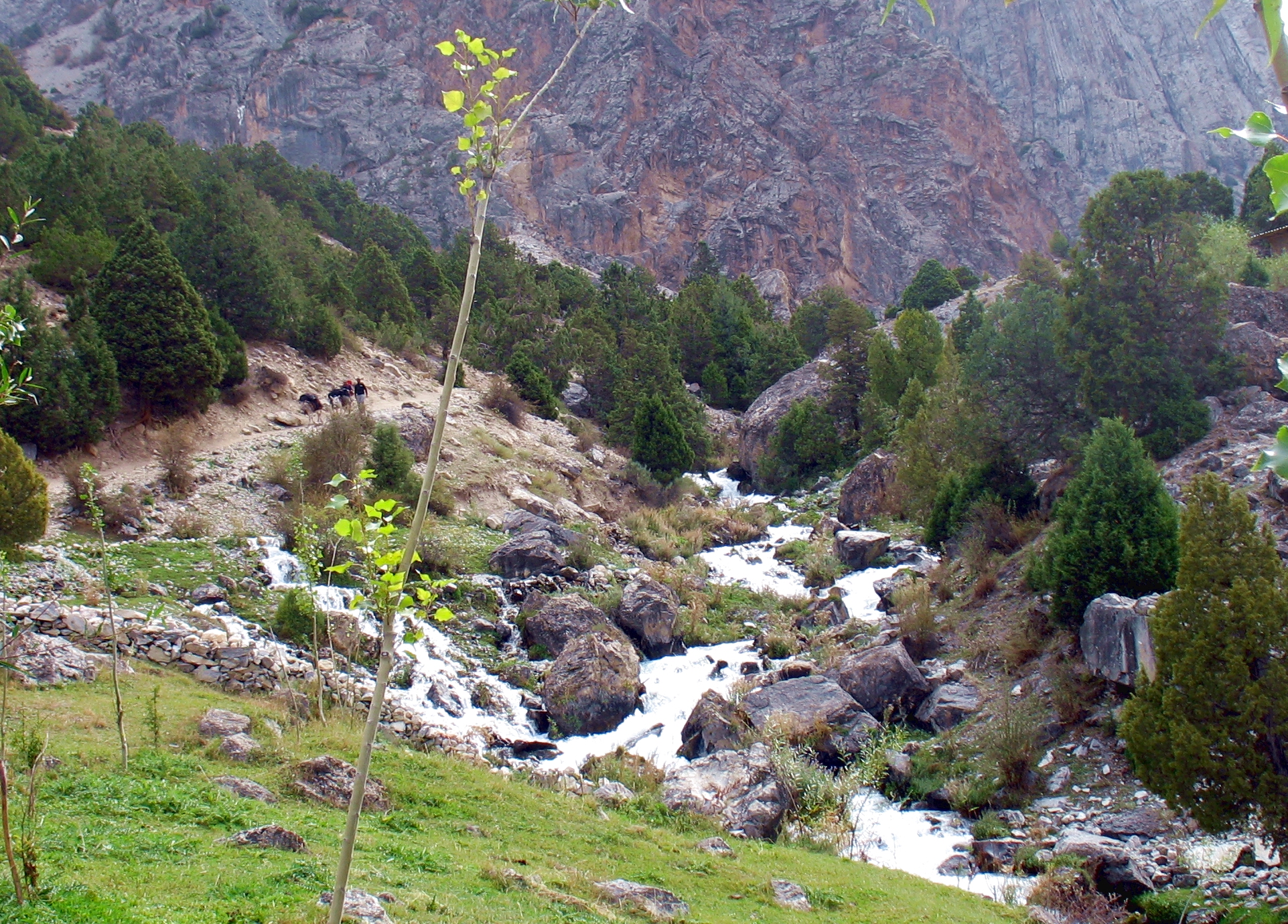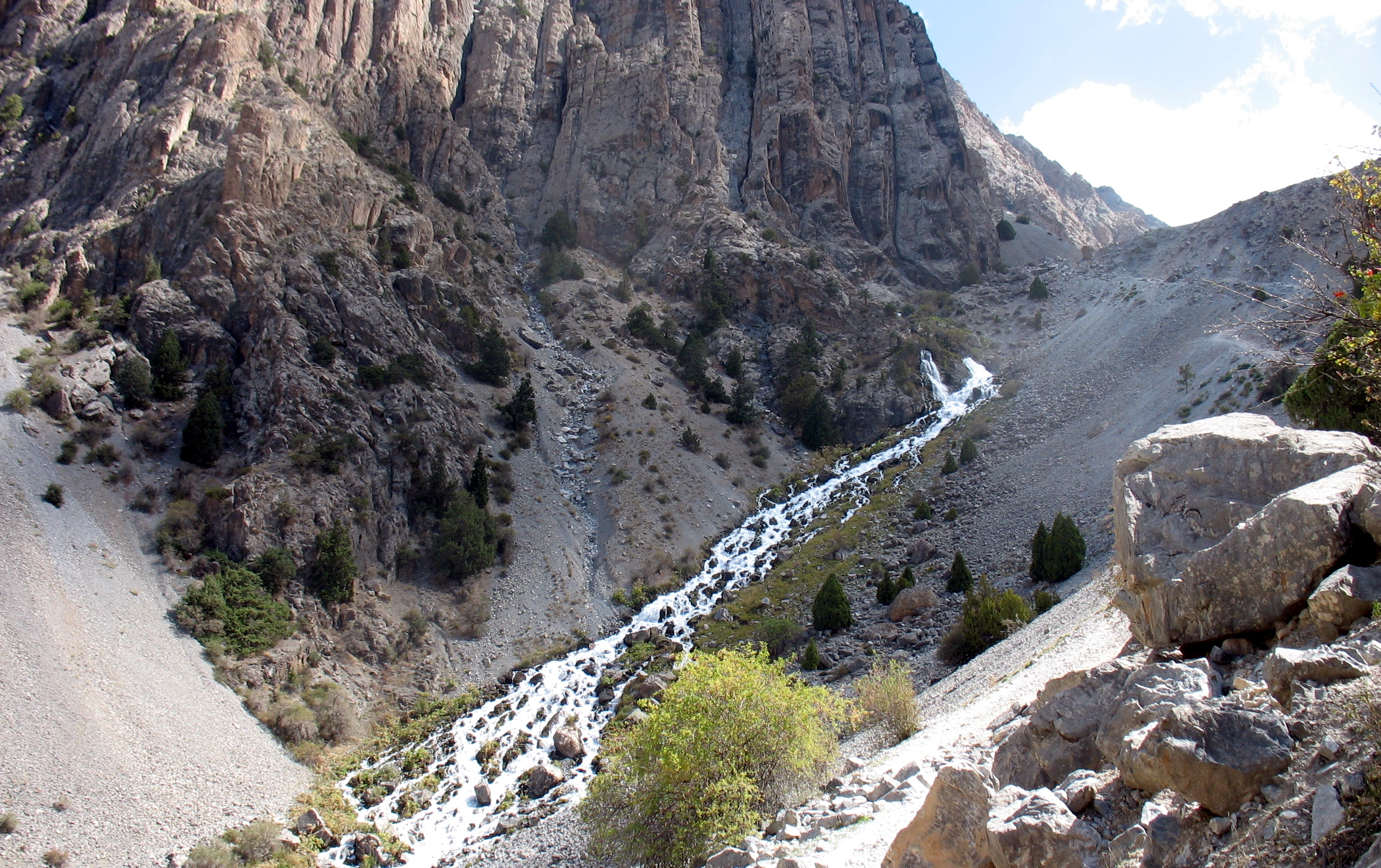 Спочатку нас супроводжувала чистенька гарна річка Уреч з безліччю порогів і водоспадів, але в верхній частині ущелини вона зникла під кам`яними завалами.