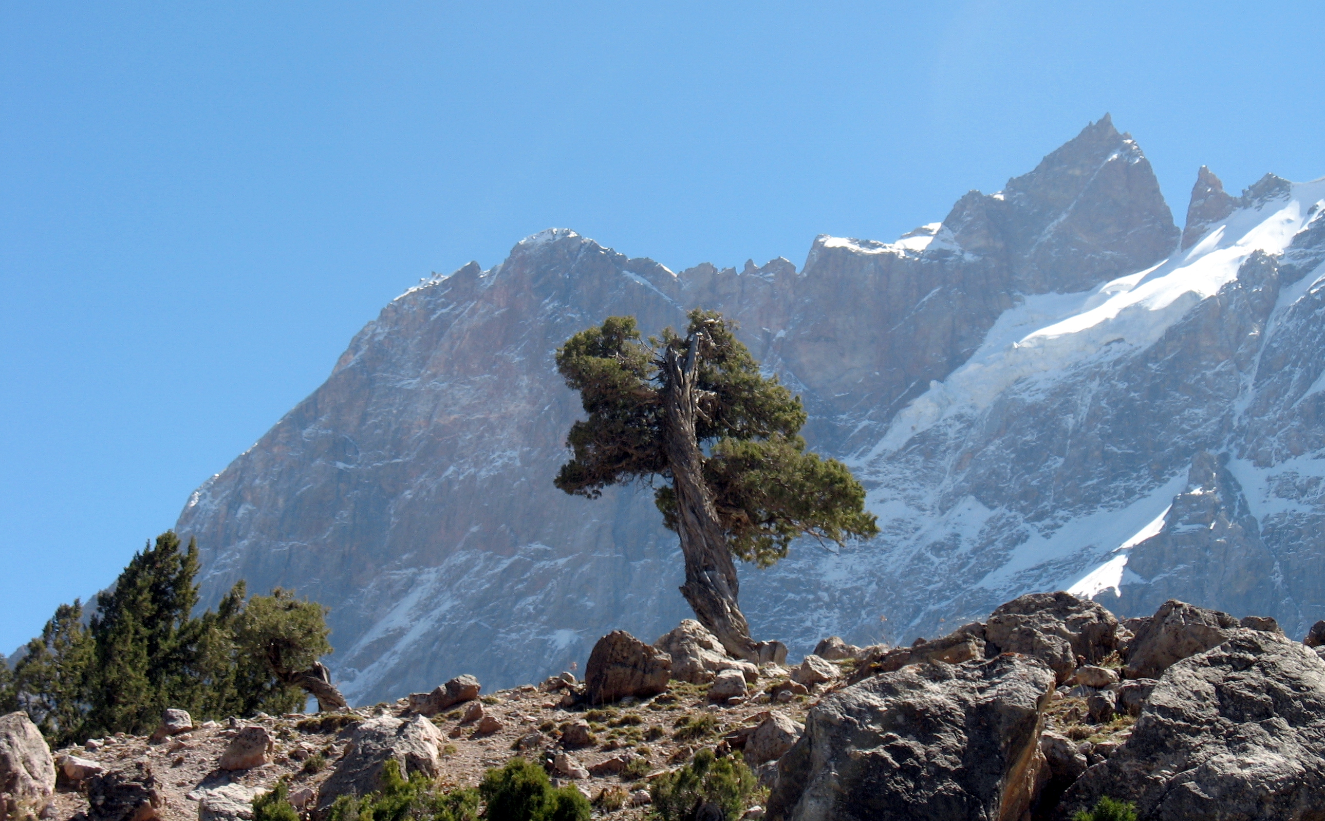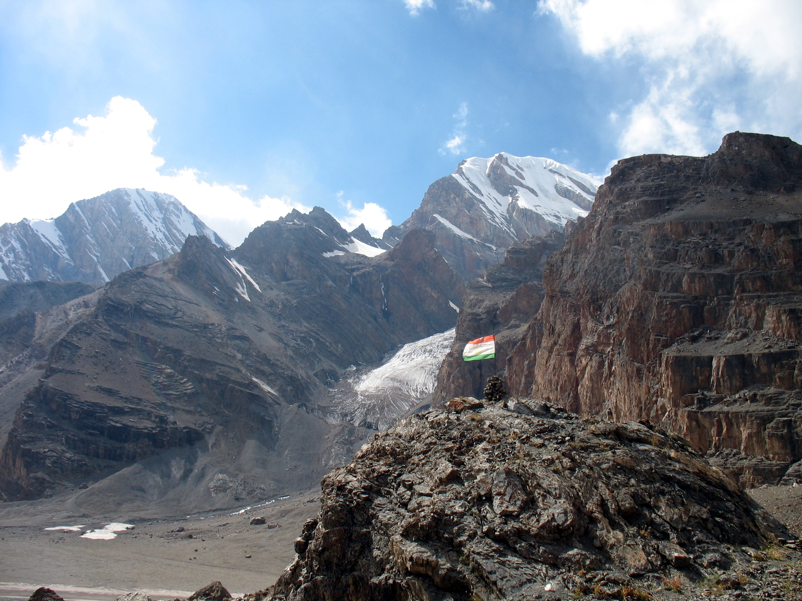 ПродовженняГарно виглядає стяг Таджикістана на фоні найвищої вершини Фанських гір - Чимтарги.