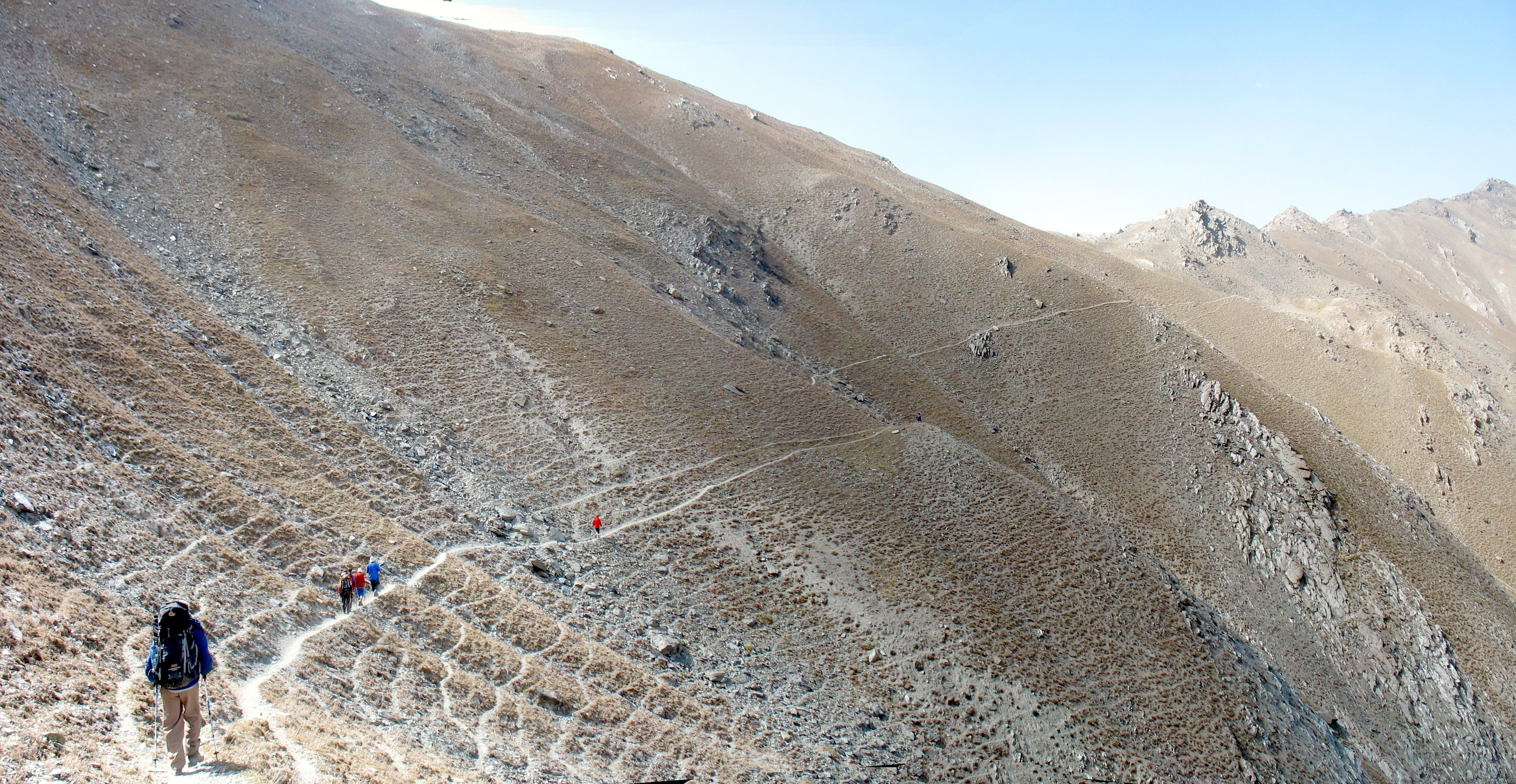 Ось і перевал. Саїд зі своєю командою не зупиняючись подався вниз, до води і зелені, а ми трохи перепочили, милуючись панорамами, які відкриваються по обидва боки перевалу.