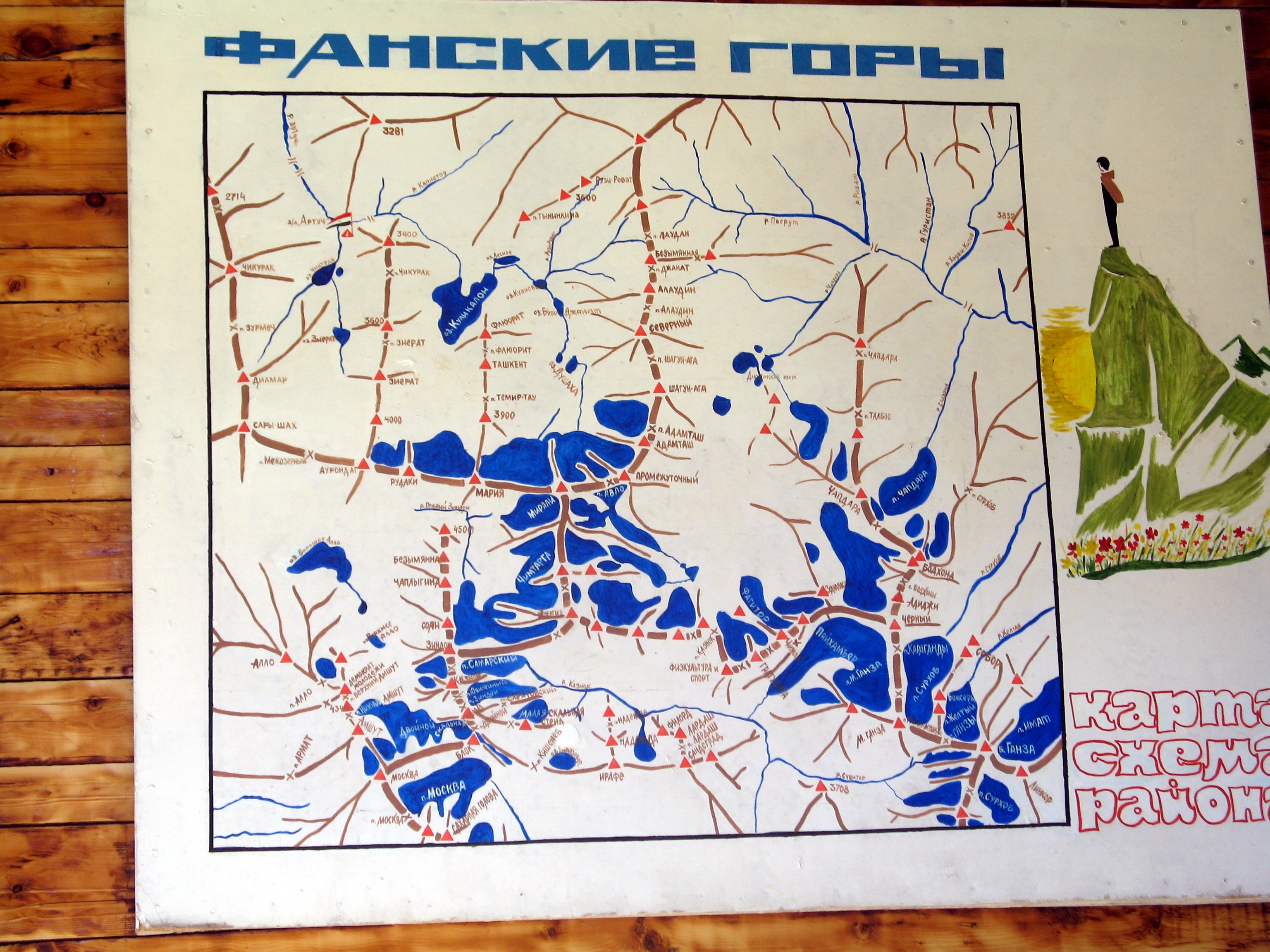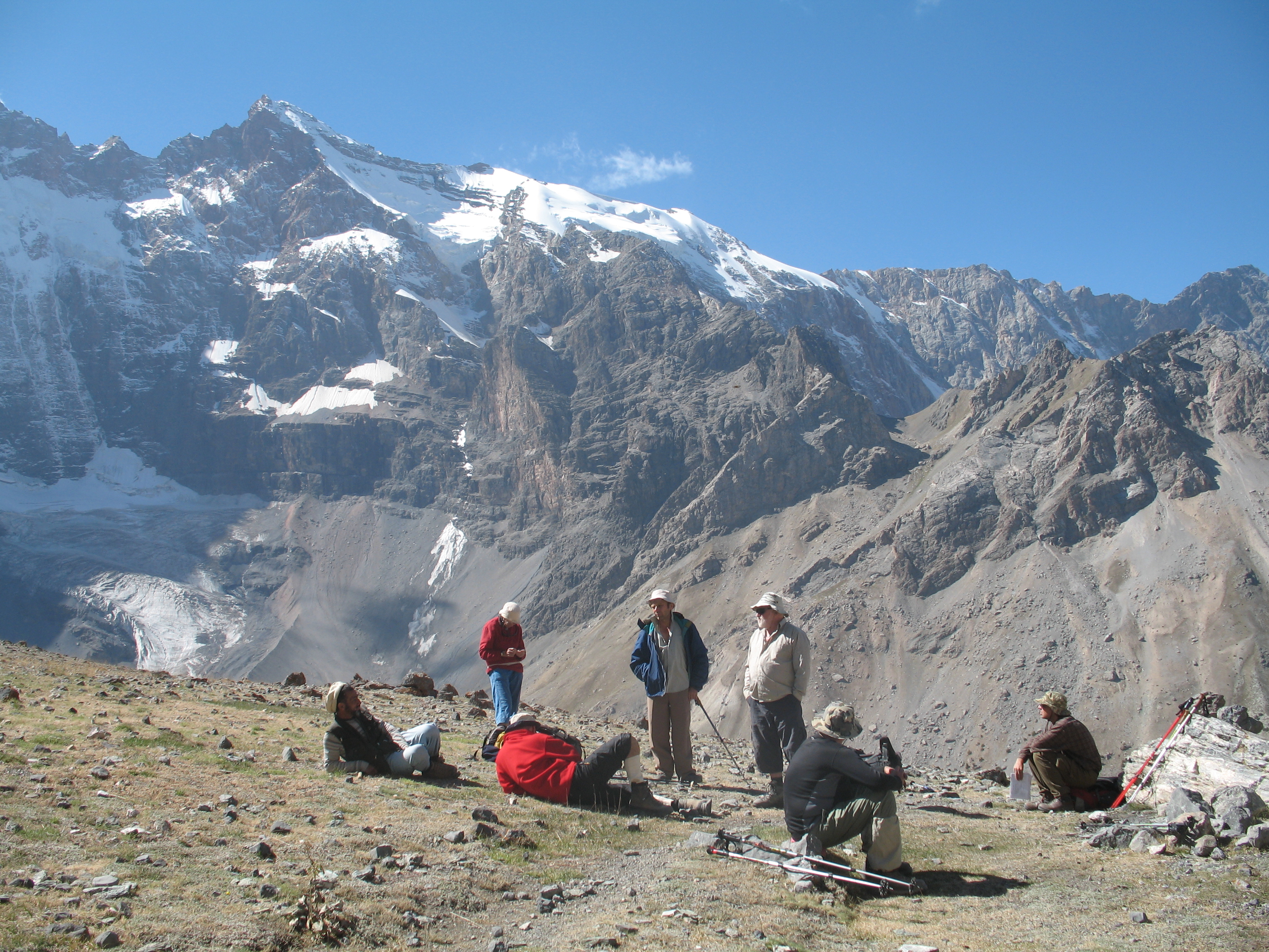 До Мутних озер.Наступного дня було заплановано радіальний вихід без рюкзаків до високогірного цирку, в якому розмістились так звані Мутні озера, навкруги яких знаходяться найвищі п`ятитисячники Фанських гір (пік Чимтарга, пік Енергія, пік Замок…).