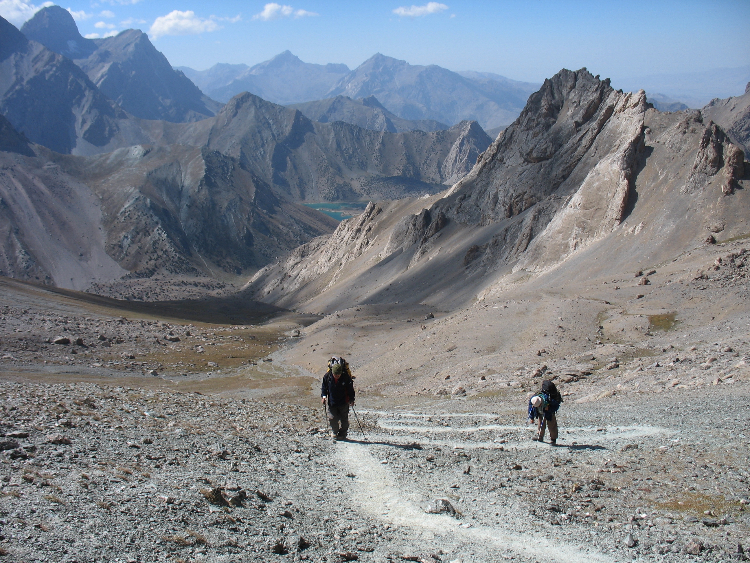 Підйом на перевал важкий і крутий йде спочатку арчовим рідколіссям, потім голими кам`янистими схилами, осипами. Краєвиди розгортаються все ширше й гарніше.