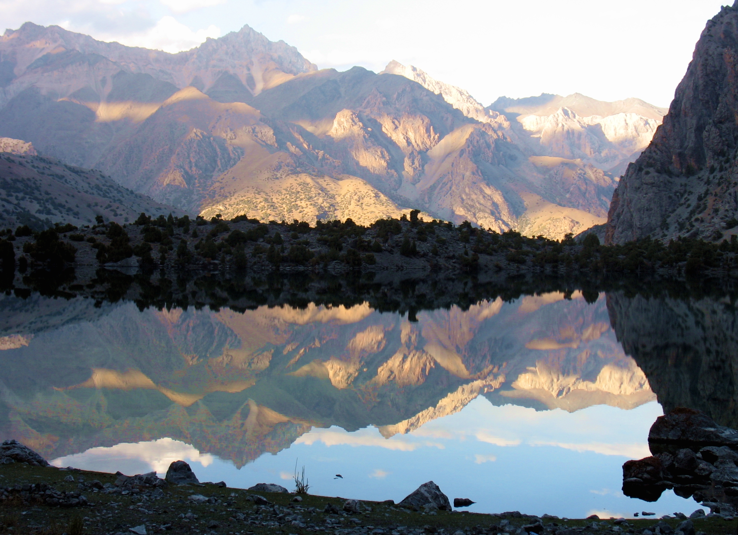 Ось і перше з Мутних озер на фоні піків Енергія та Чимтарга