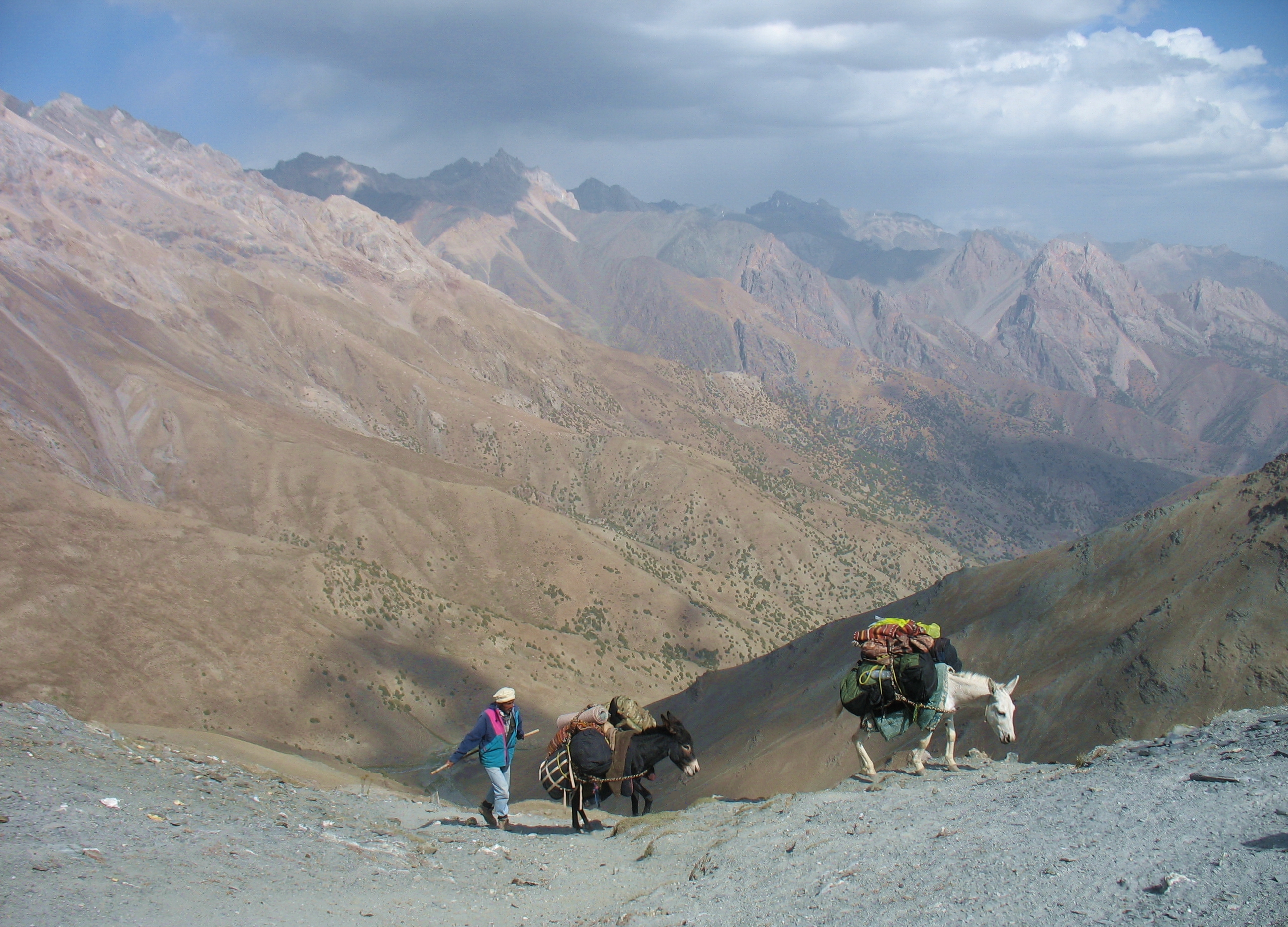 Дехто з наших бував у Гімалаях і заразився там тією невиліковною буржуйською хворобою і от, коли на нас біля Кулікалонського озера наскочив зненацька з криком "Аллах акбар!" місцевий моджахед разом з двома ішачками і запропонував свої (тобто ішакові) послуги із перенесення наших рюкзаків, то особливих вагань у нас не сталось, проблема була лише в ціні найму. Погонщик - Саїд виявився дуже колоритною фігурою, живописним чоловіком, вдягненим в шапку-моджахедку і таджикський халат. Торгівля відбувалась в класичному стилі - ціну, яку він загнув ми зразу ж збили вдвоє, Саїд з гучними криками обурення, відбігав і прибігав, поступово знижуючи ціну, але не до рівня, який нам був відомий. Ми в кінці кінців заявили, що не потребуємо ніяких ішаків і пішли собі ставити бівак, готувати вечерю, після чого почули пояснення, що хоч ми його й ріжемо без ножа, але тільки для нас і тому, що сезон вже кінчаєтьс і т.д. і т.п. - коротше ціна швидко знизилась до прийнятного рівня. Домовились, що він підійде до нас вранці.