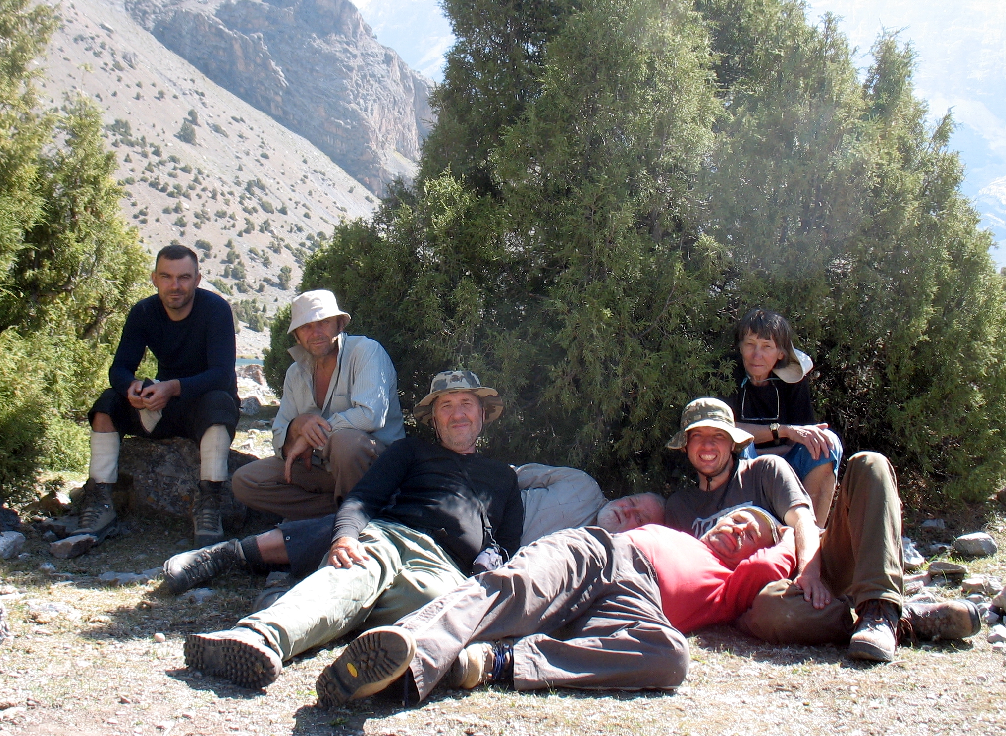 Це перекур десь на підйомі на одну зі ступеней завалу, далеко внизу видніються Алаудинські озера.