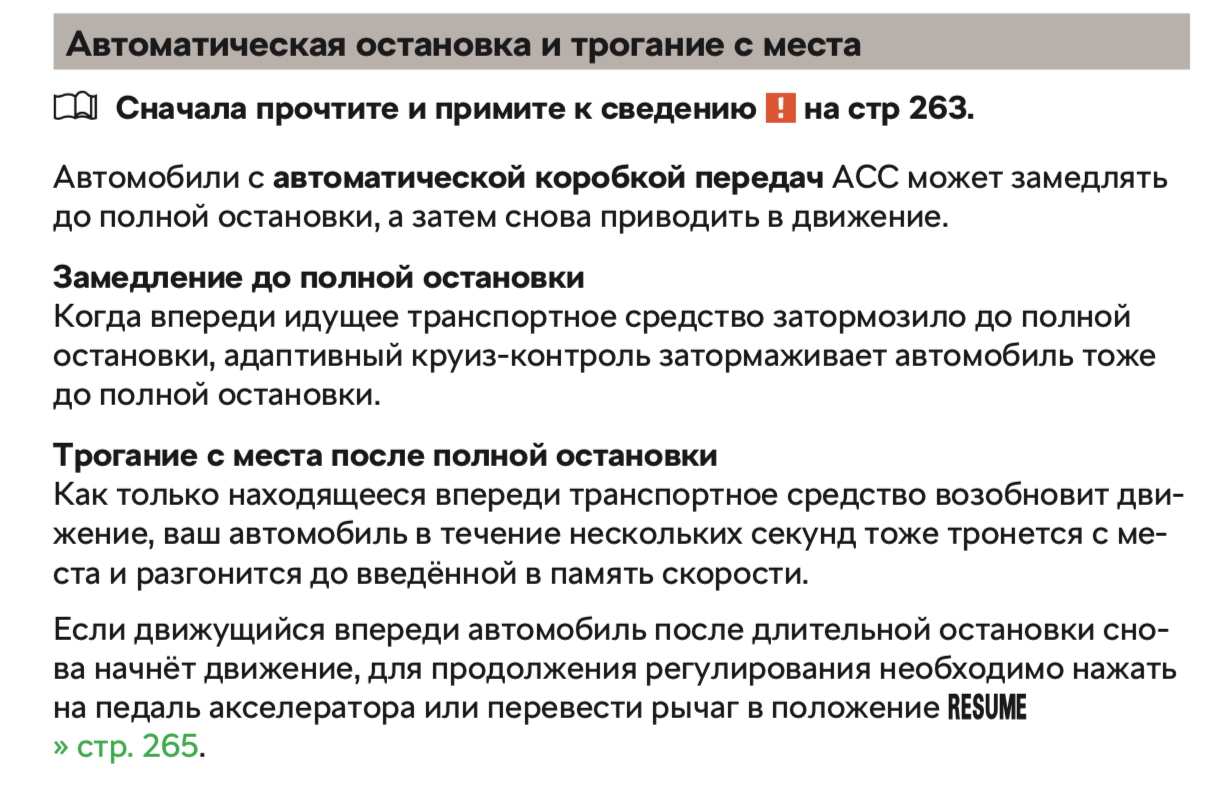 Ти впевнений? У всіх машинах з адаптивним круїзом, що я бачив, явно писалося що якщо машина повнітю зупиниться, то вона сама не поїде поки ти не натиснеш на газ - зроблено спеціально з міркувань безпеки.