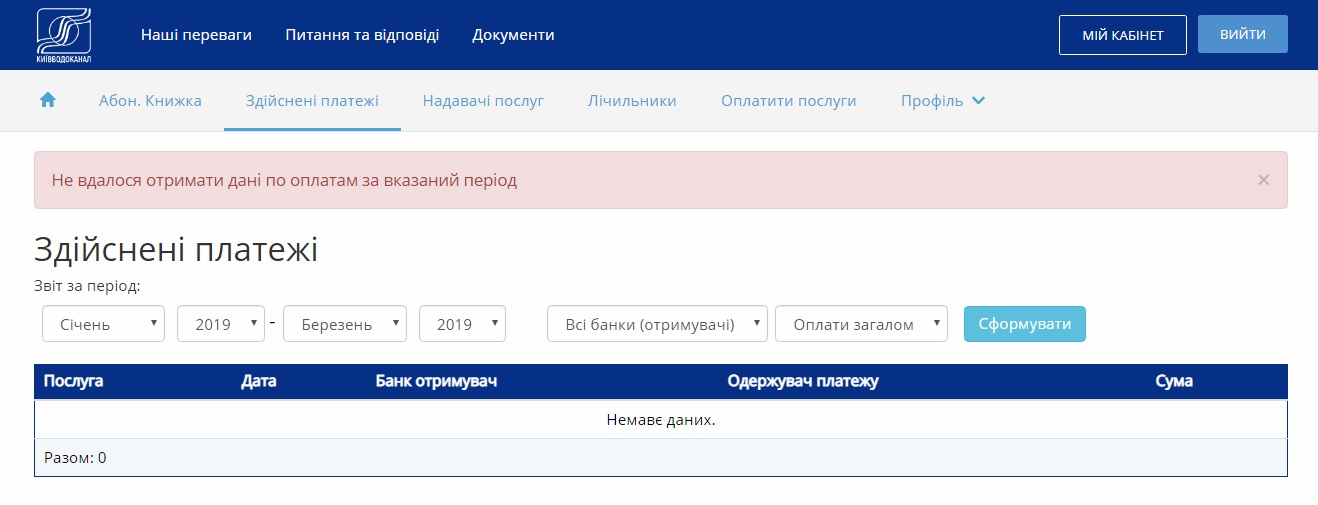 У одного меня личный кабинет на сайте Киевводоканала глючит?