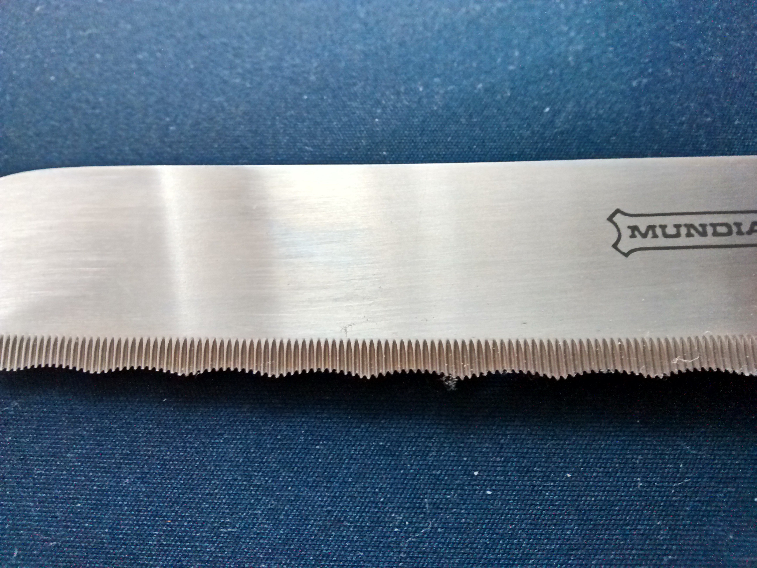 Вообще считаю, если держать кухонные ножи острыми, хлебный нож в доме не нужен. По крайней мере, крошек от него очень много по сравнению с обыкновенным острым кухонным ножом. А если нож кухонный очень хорошо заточен и при этом он достаточной для одного реза по хлебу длины, крошек вообще не будет.