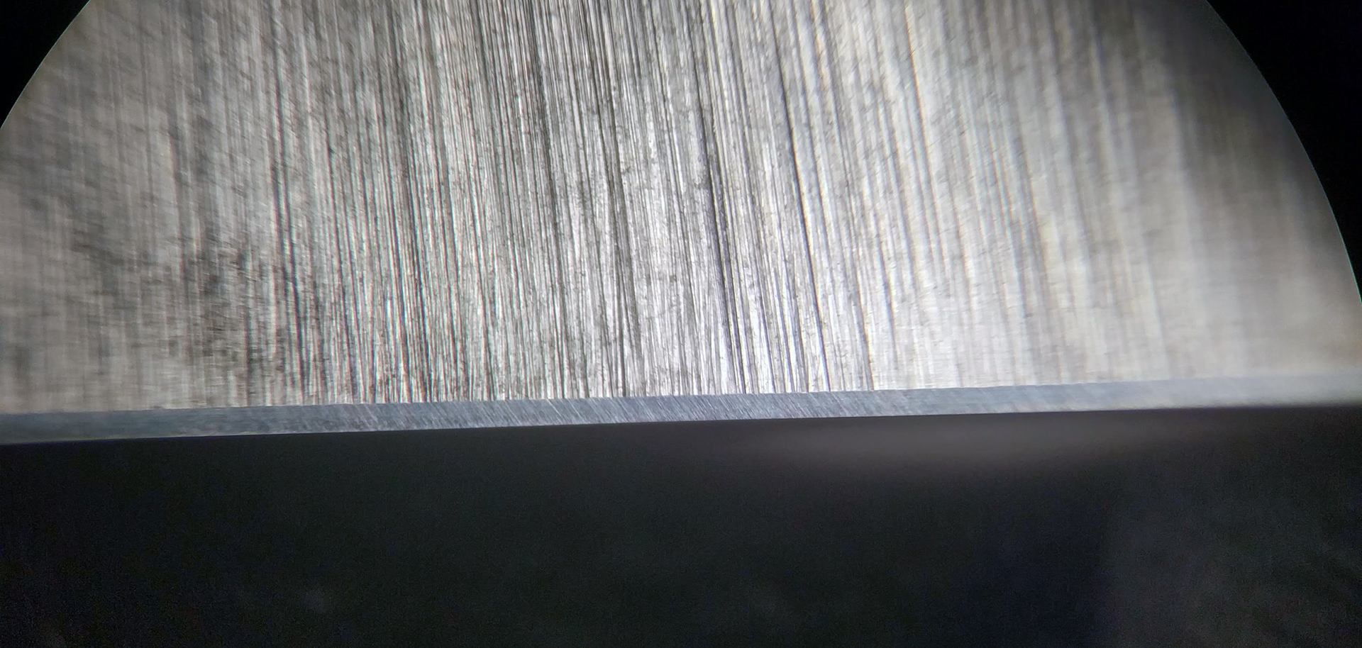 Сначала вроде все нормально было. Как начал переходить на более тонкие камни, начал пробовать рез. Вижу что-то не то. Смотрю в линзу на кромку, вижу микровыкрашивание. Прохожу еще раз, оно все равно проявляется. Короче, поставил микроскоп. И тут...