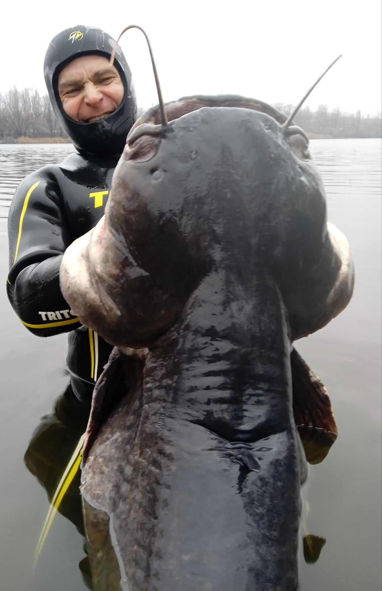 Дайвер в Днепре загарпунил 50- килограмрвого сомищу =D>